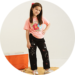 Brighten her day with this drop-shoulder T-shirt featuring a fun “Sunlit Shores” tropical graphic.Made from soft and stretchy lycra jersey fabric, it offers breathable comfort and a relaxed fit for...