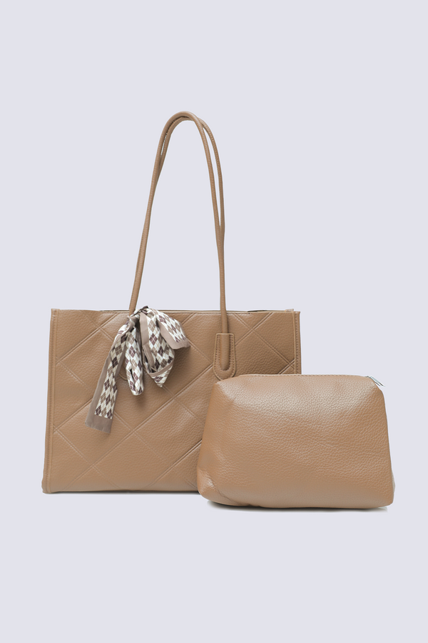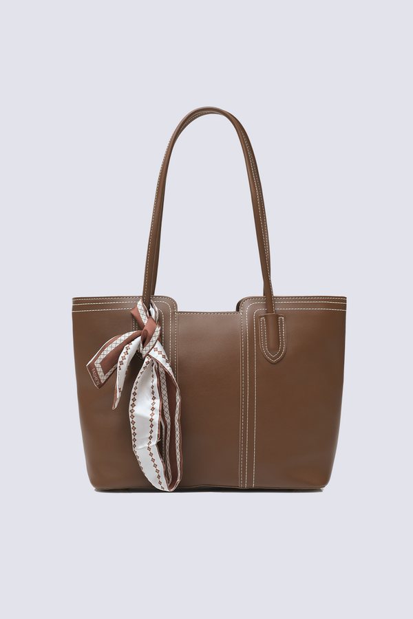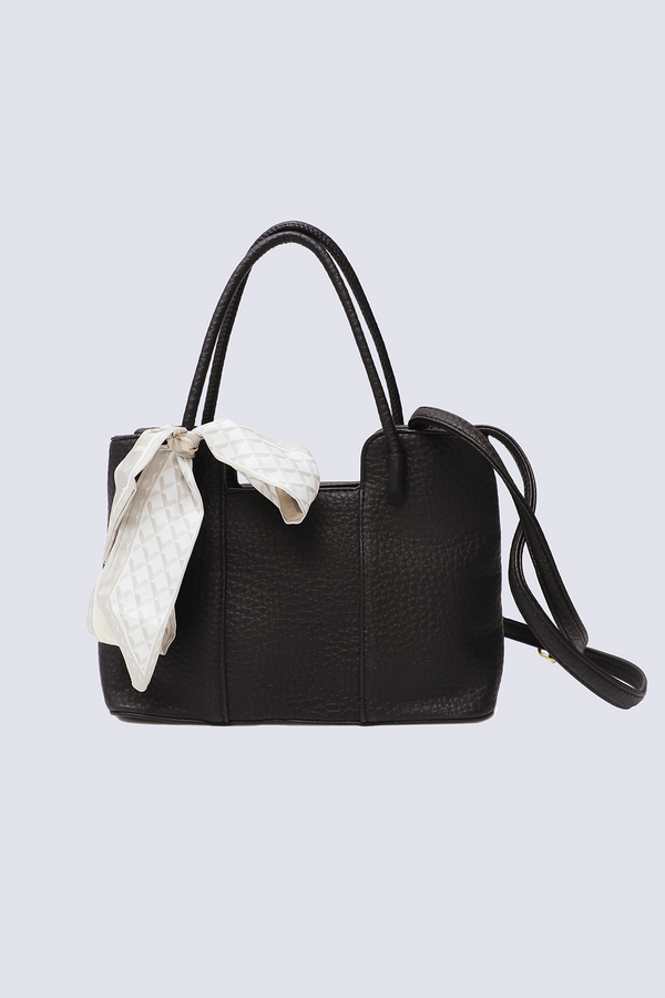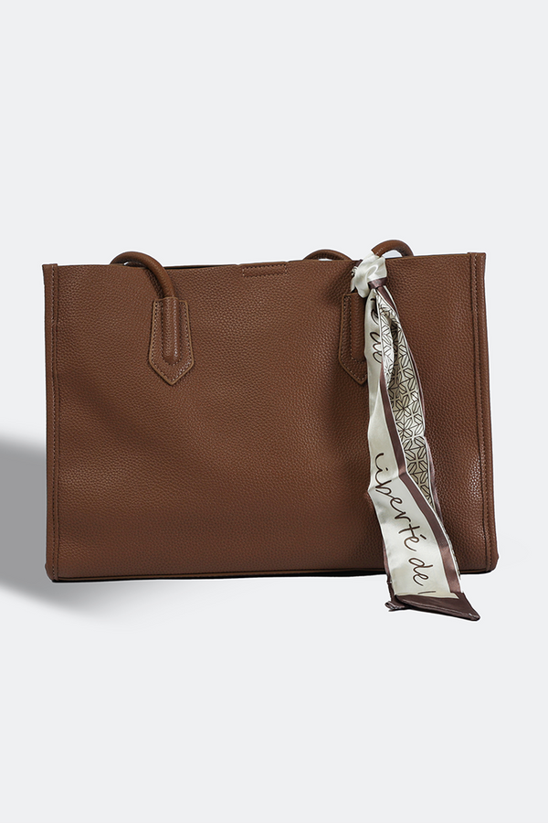 Made of faux leather, this stylish tote bag features a removable printed silk scarf for an added touch of feminine charm. With its large capacity, it offers plenty of space for your...