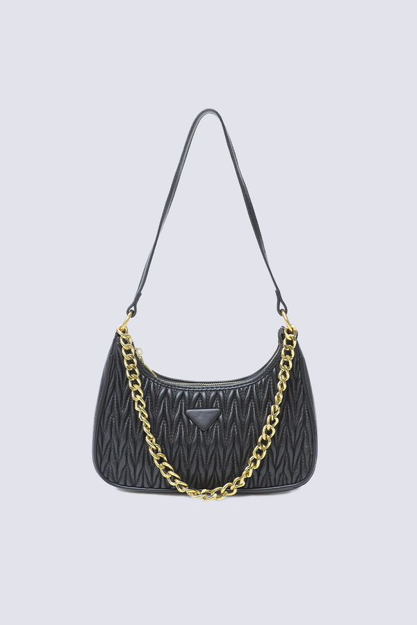Design details: The elegant handbag features a zipper closure, polyester lining, and slip pockets for easy organization. The quilted design and metallic chain link accents provide eye-catching appeal and a dose...