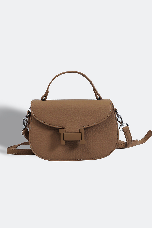 This stylish Saddle Crossbody Bag is crafted from faux leather with a fold over top and secure buckle fastening. It features a chic single top handle and an adjustable, detachable shoulder strap...