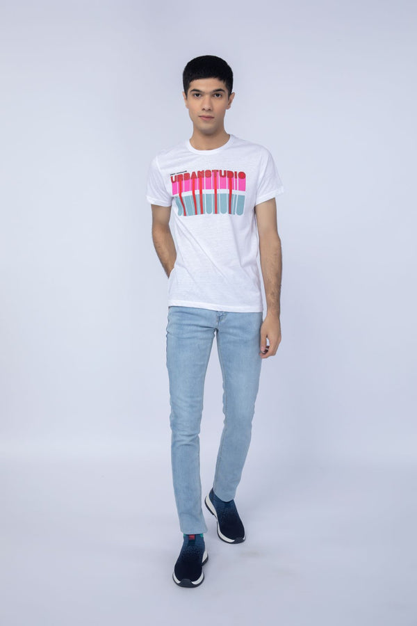 This white T-shirt is made from soft jersey fabric and features a bold red print. Perfect for everyday wear, the comfortable fabric and simple design will have you looking stylish...