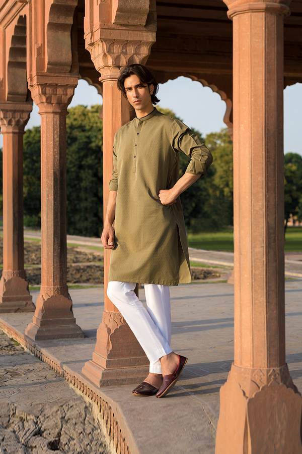 Slim Fit Cotton Jacquard Kurta