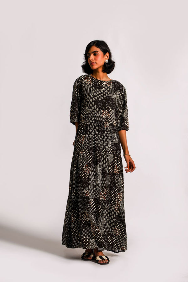 Step into artistic ease with this effortlessly chic printed midi dress. Made from breathable polyester lawn, it features a relaxed silhouette with a classic collar, button-down front, short sleeves, and...