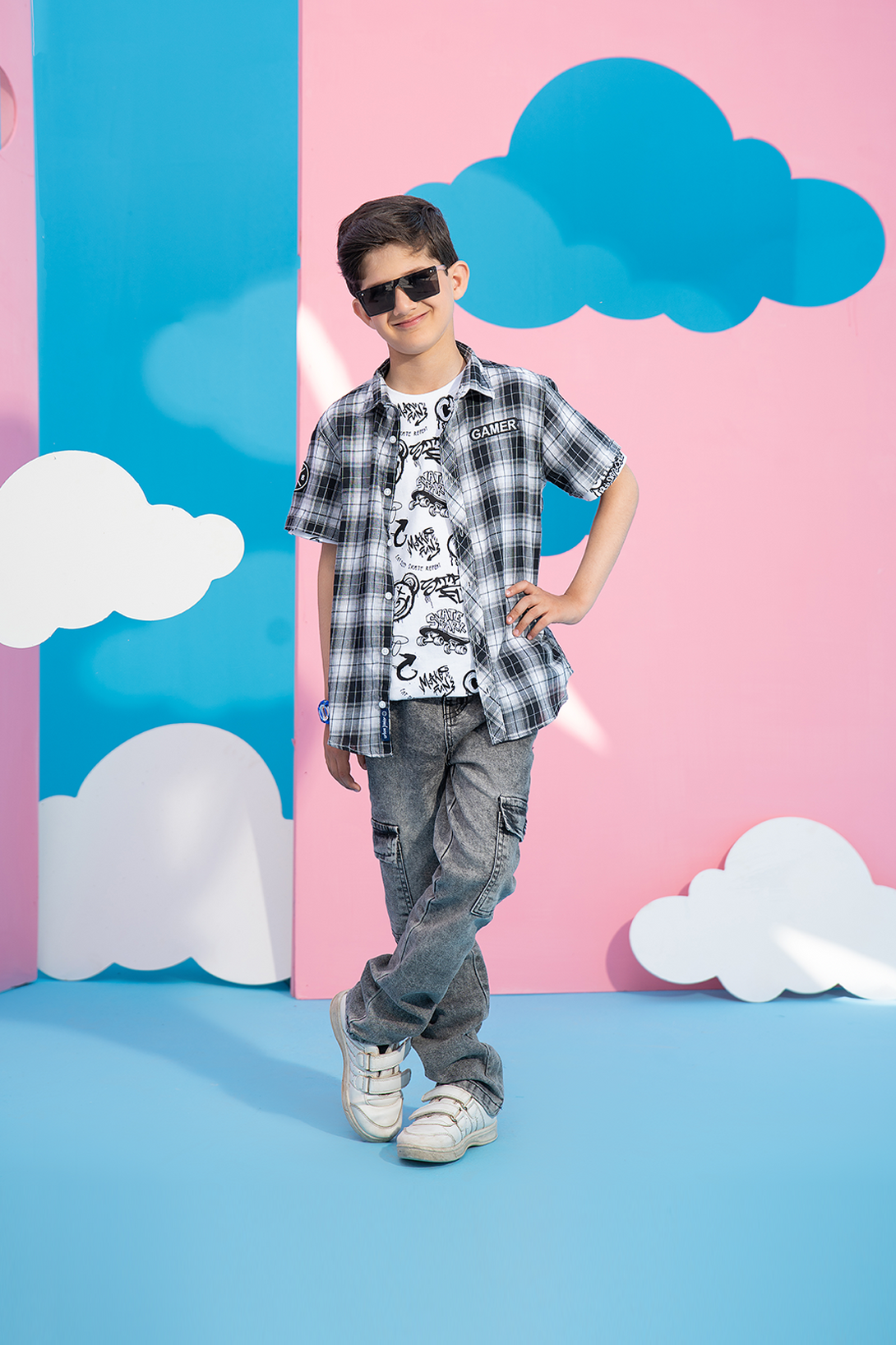 Upgrade your little one’s wardrobe with this classic Boys' Button-Up Checkered Shirt. Made from soft, breathable cotton, this shirt features a timeless checkered pattern and short sleeves for a cool, comfortable fit. Perfect for casual outings, playdates, or school, it offers style and versatility all in one.