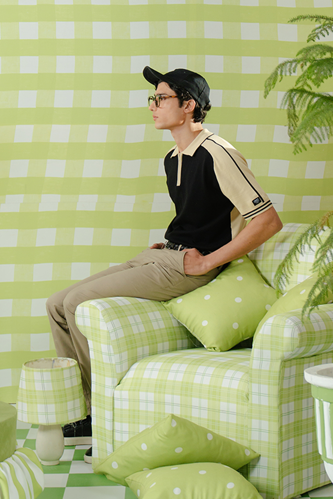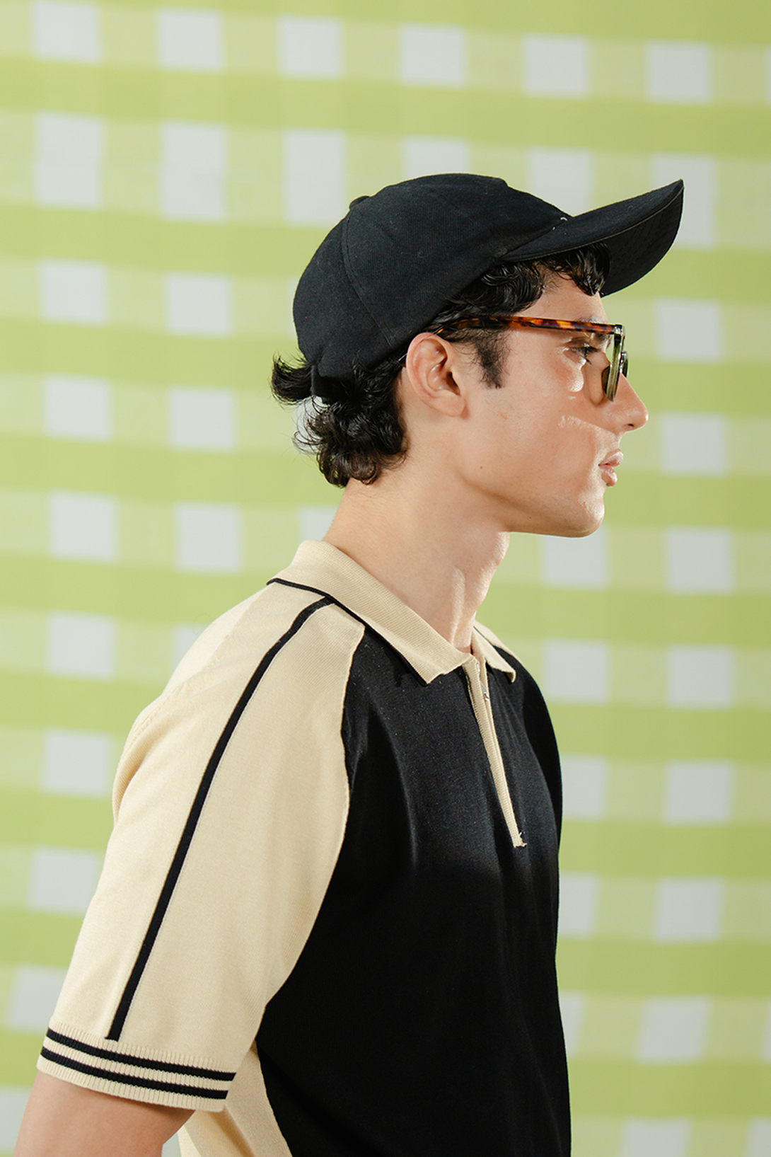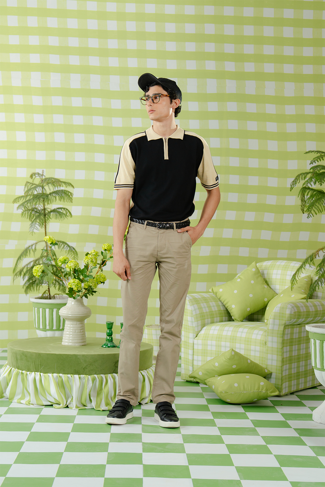 Elevate your style effortlessly with this Short-Sleeved Knitted Polo. Made with 100% premium mercerized cotton, its classic polo neck with color blocked pattern and sleek metal half-zip adds a contemporary touch, this polo exudes timeless elegance. Ideal for any occasion, whether casual or formal.