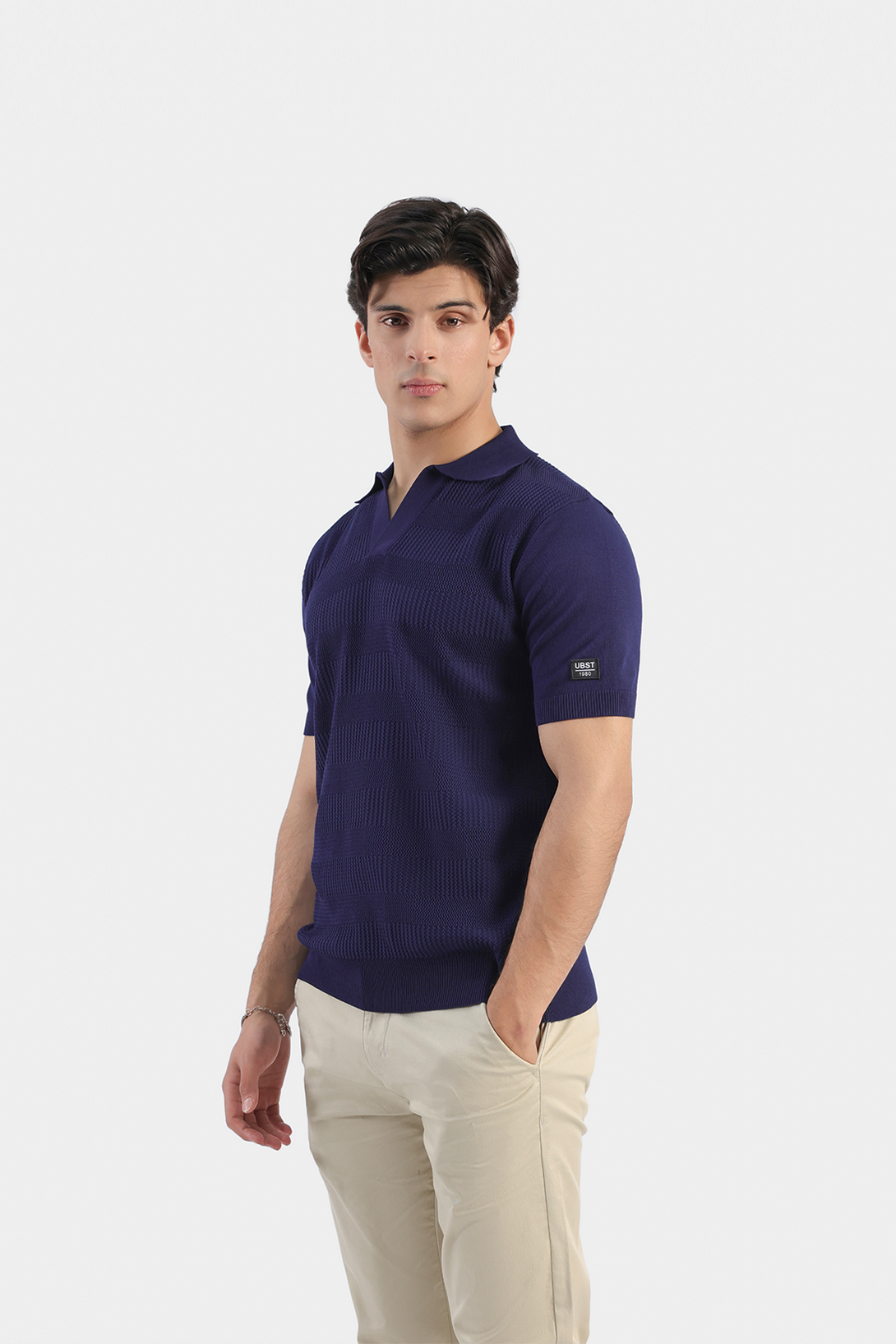 Elevate your wardrobe with this knit polo shirt. It is made from 100% mercerized cotton featuring a Johnny collar, Regular fit, Short sleeves, Ribbed cuffs, and bottom hem. Ideal for any occasion, whether casual or formal.
