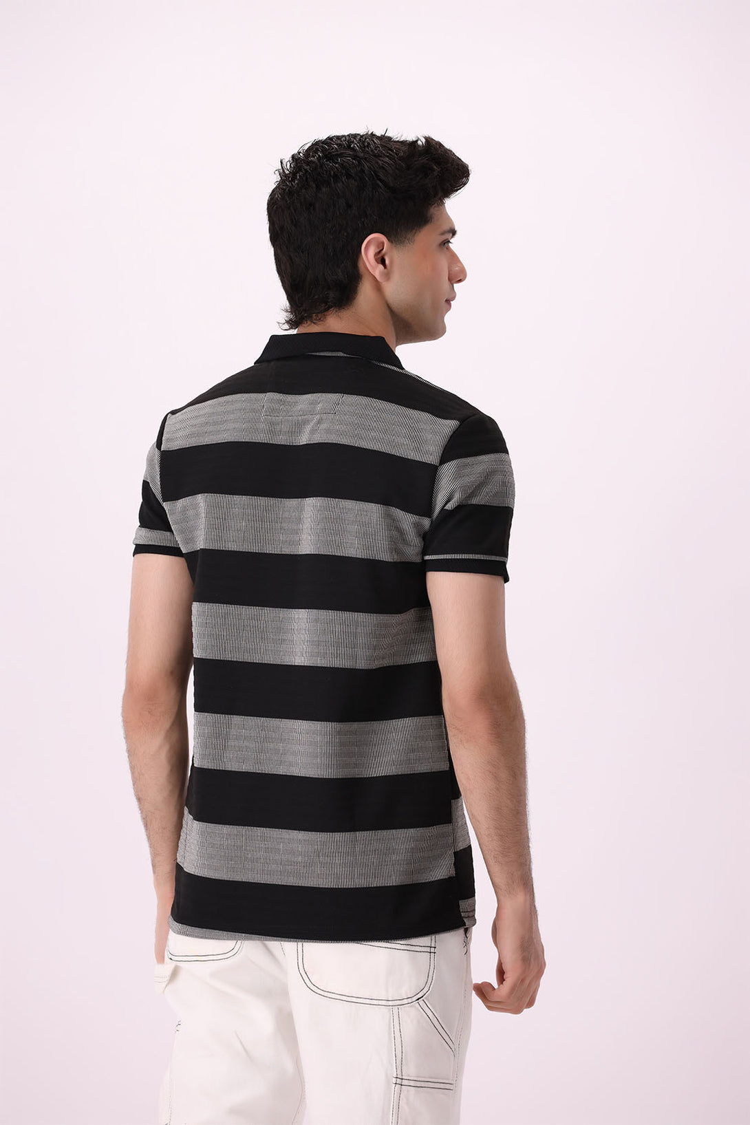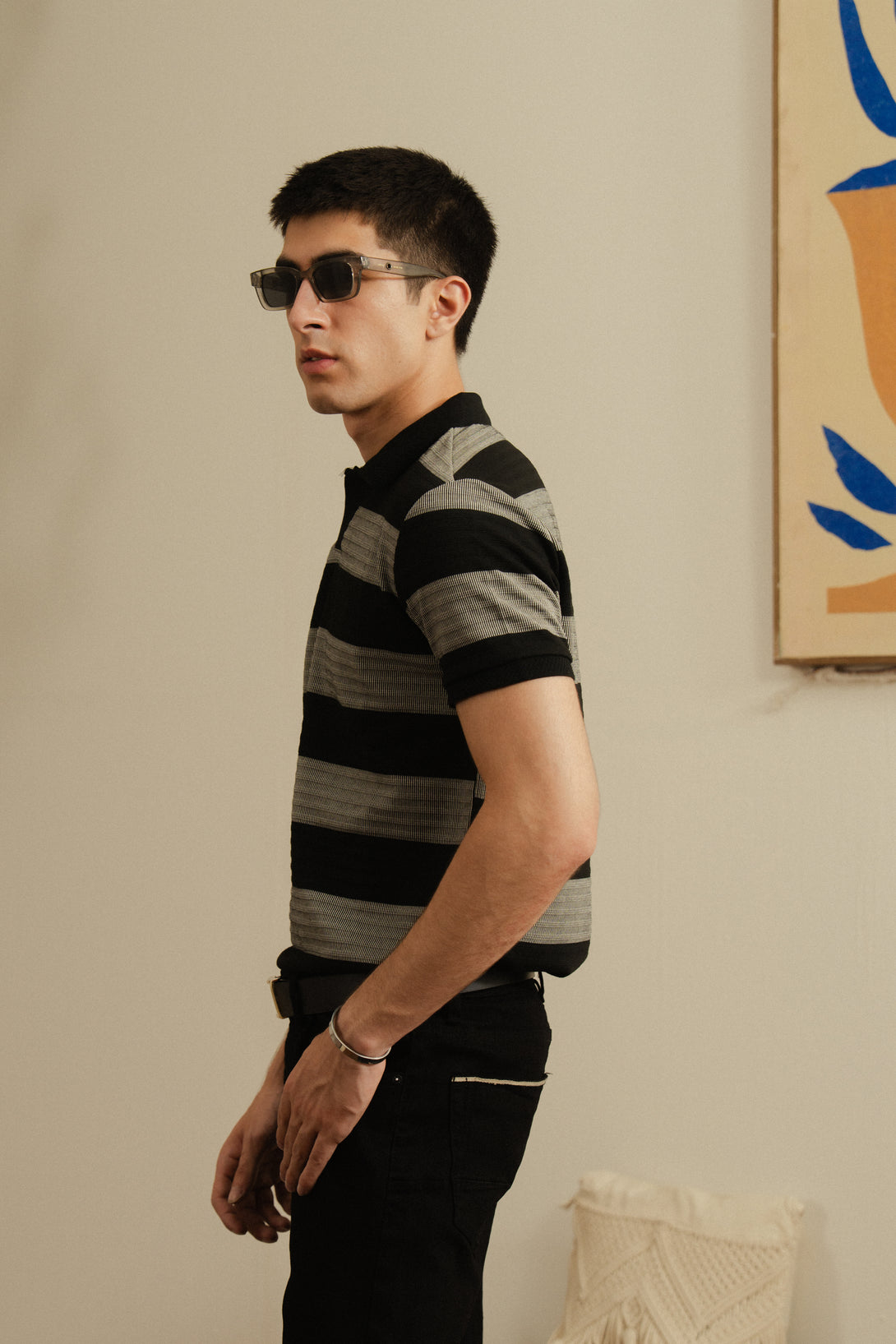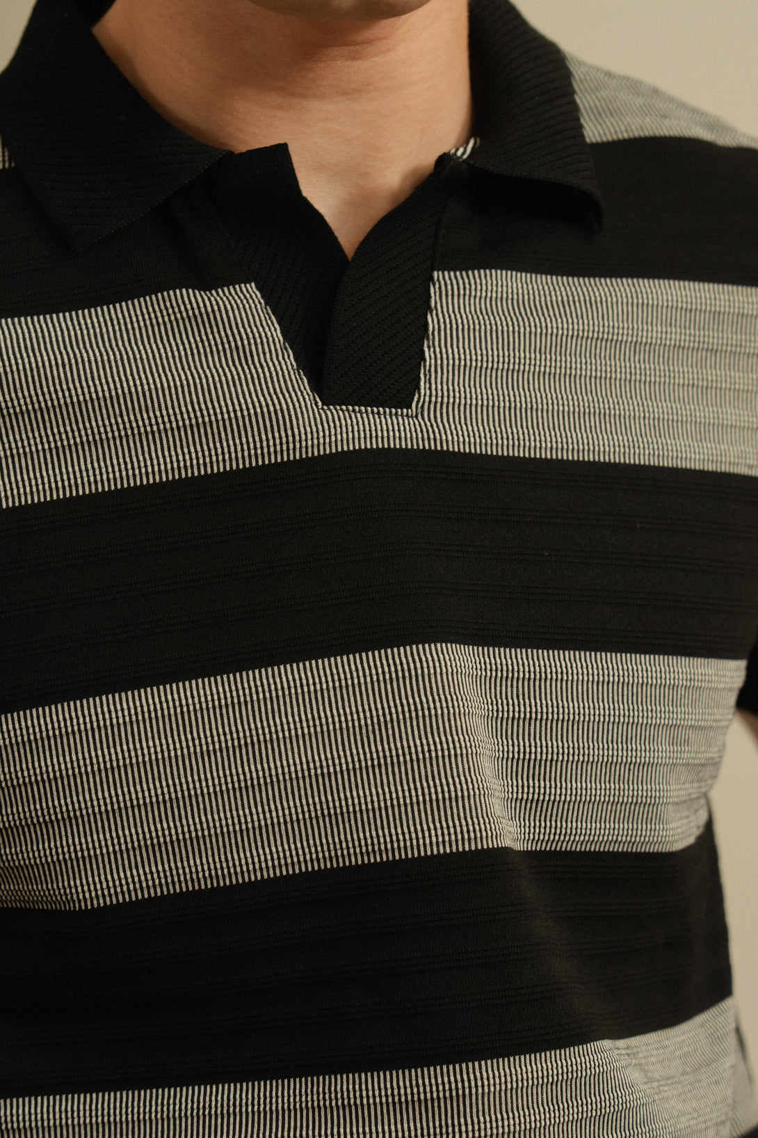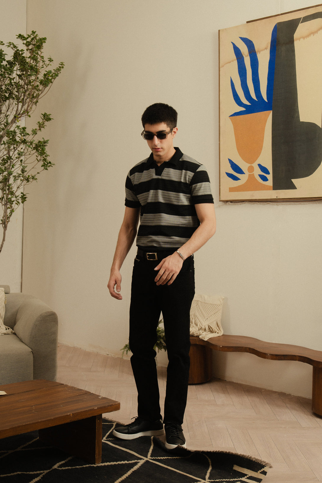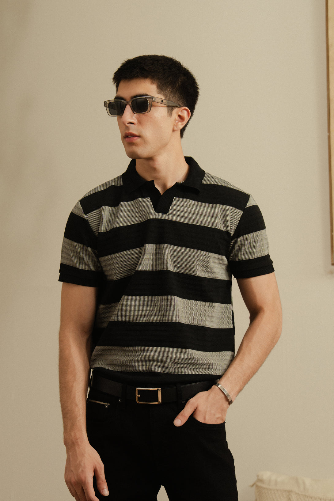 Expertly crafted with mercerized cotton, this men's polo offers superior quality and comfort. Featuring a classic regular fit with its horizontal stripes and Johnny collar, it is ideal for the warmer months.