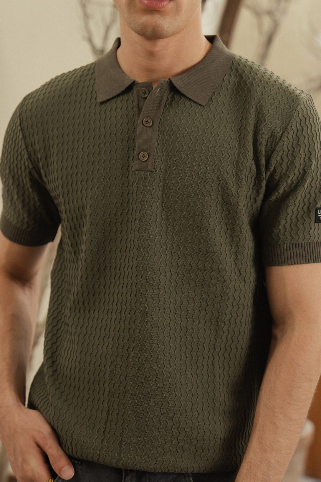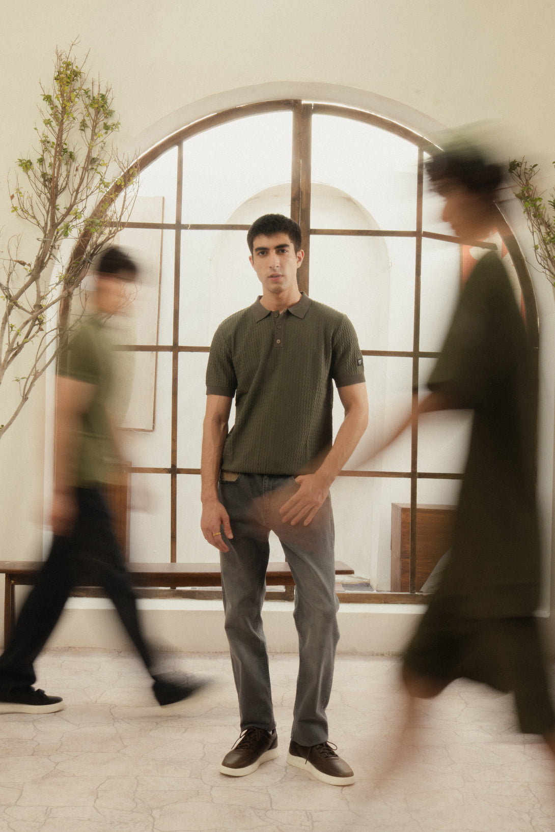 Elevate your style effortlessly with this Knitted short-sleeved Polo. Made with 100% premium mercerized cotton. It features classic polo neck, self pattern, ribbed hem and cuffs .With its classic polo neck, it exudes timeless elegance. Ideal for any occasion, whether casual or formal.