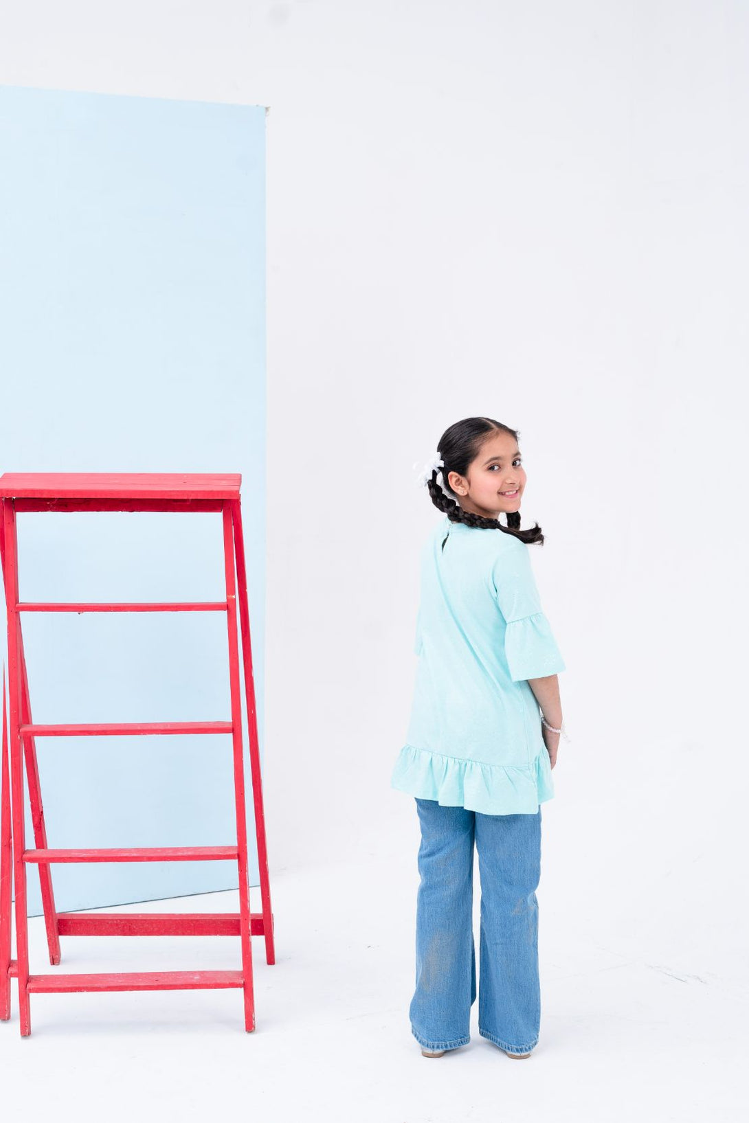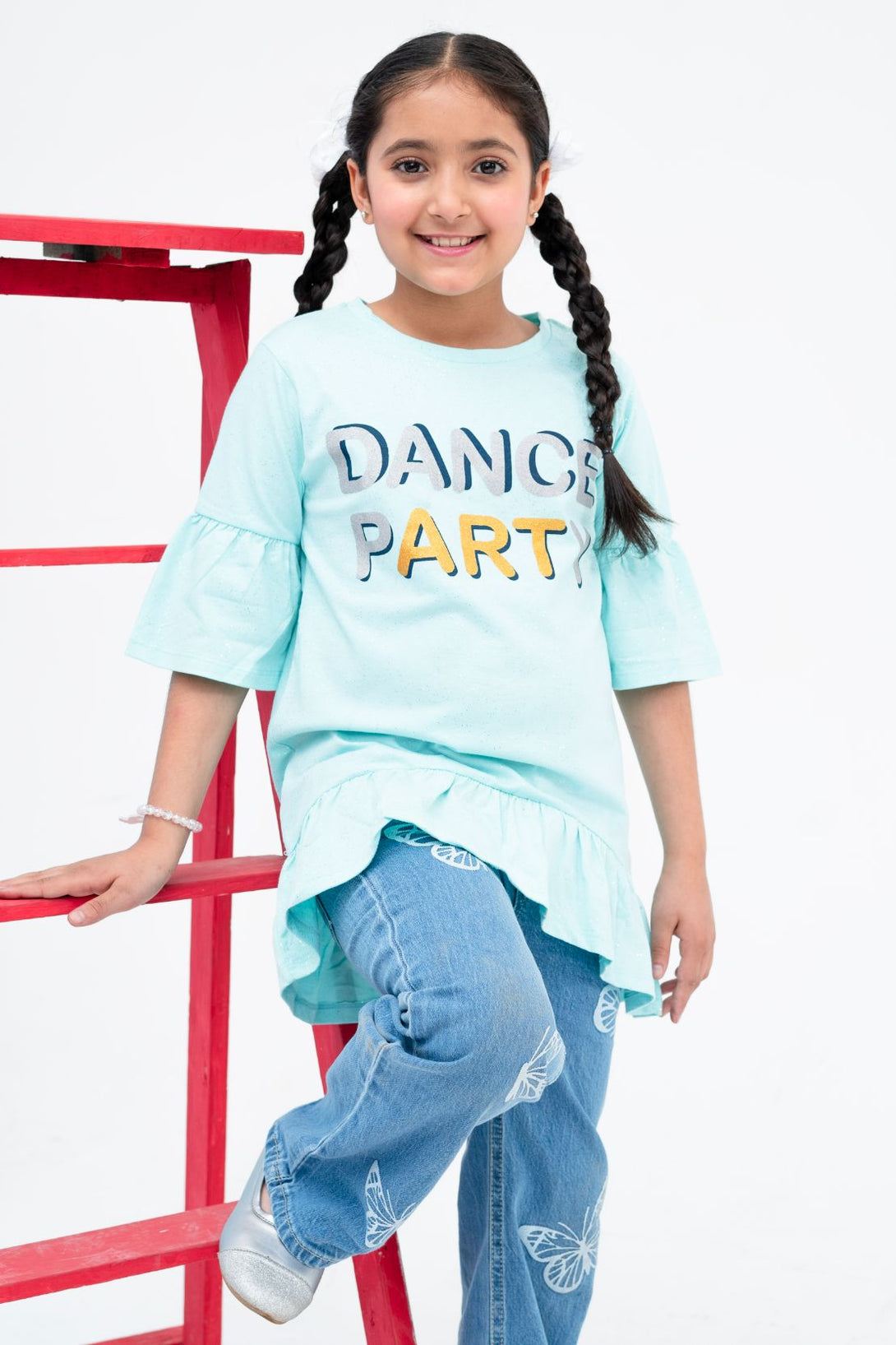 This girl top is made with high-quality jersey fabric, ensuring durability and comfort. The lightweight material allows for easy movement and breathability, making it perfect for everyday wear. Upgrade your little one's wardrobe with this stylish and practical top that will keep them comfortable all day long.