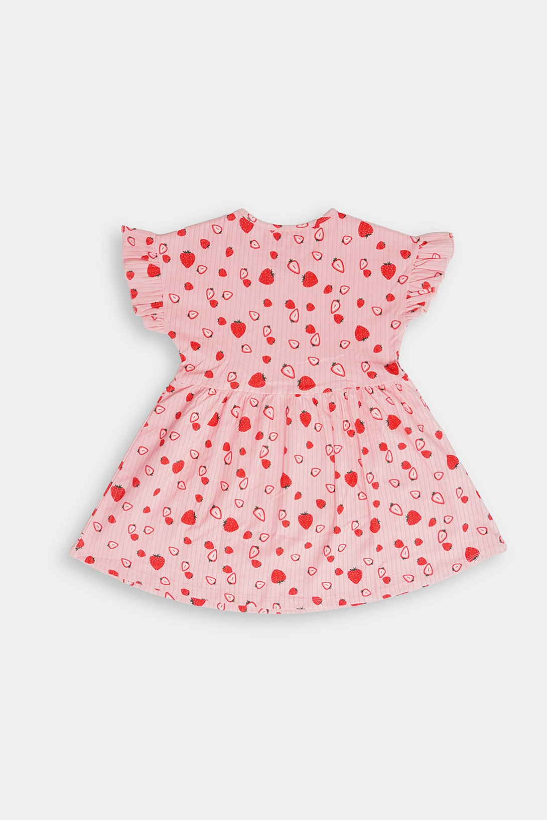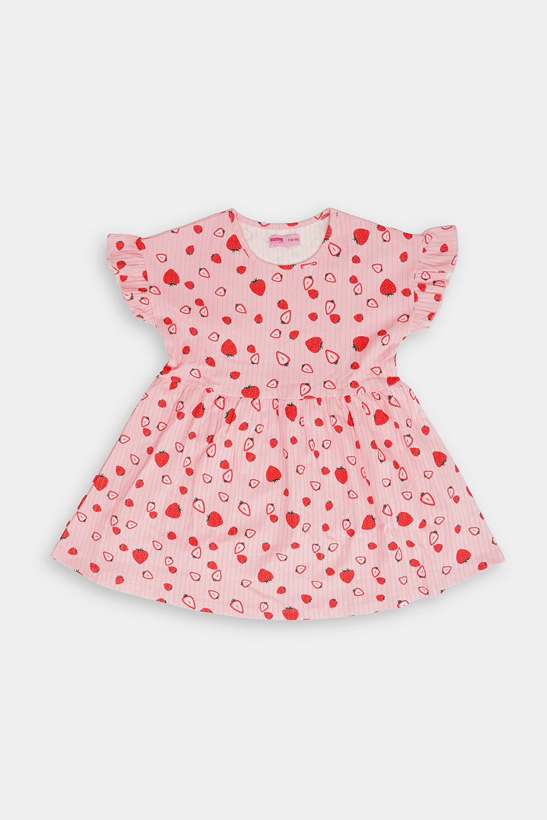 This Strawberry Printed Tiered Dress features a ribbed fabric that enhances its texture and stretch for a comfortable, flattering fit. The playful strawberry print adds a charming, fresh appeal, while the tiered design creates a graceful silhouette. Expertly crafted, this dress balances style and comfort, making it a standout piece for any wardrobe.