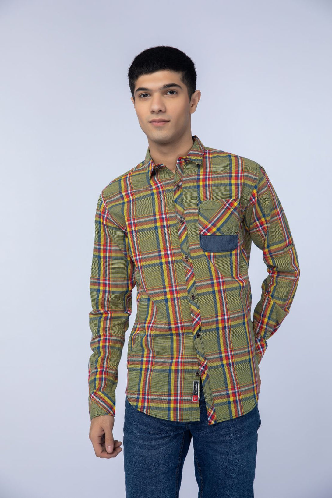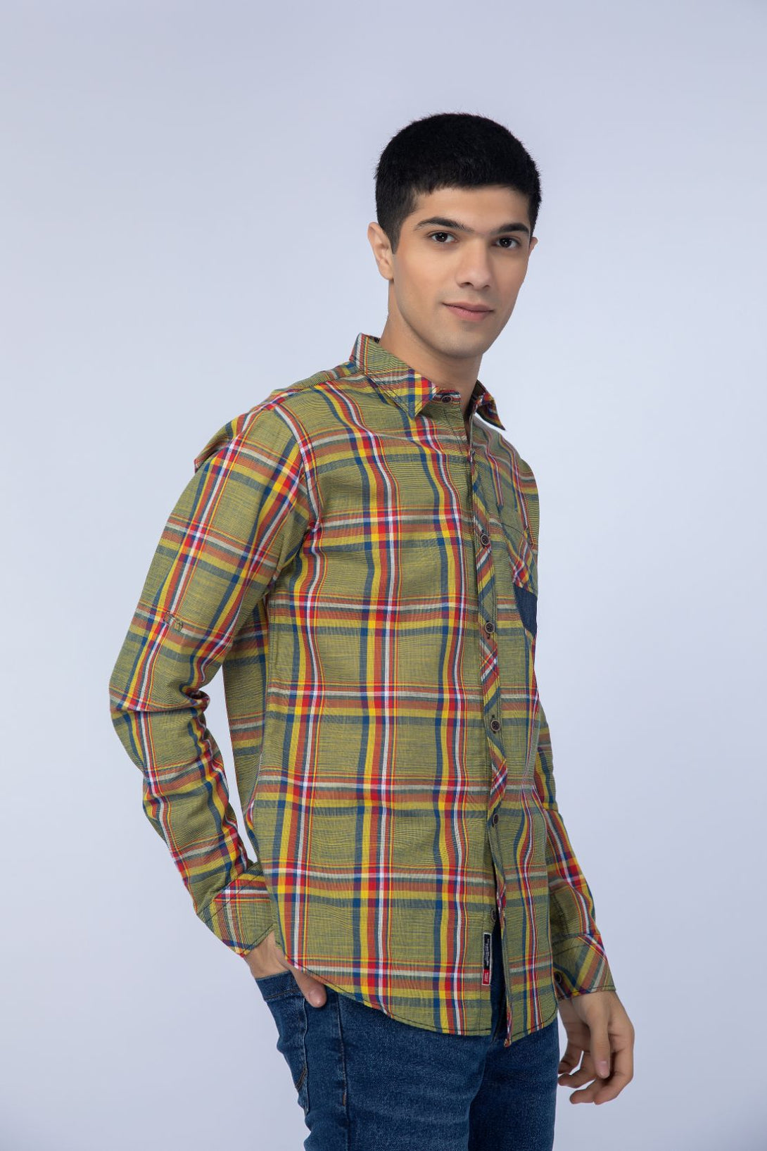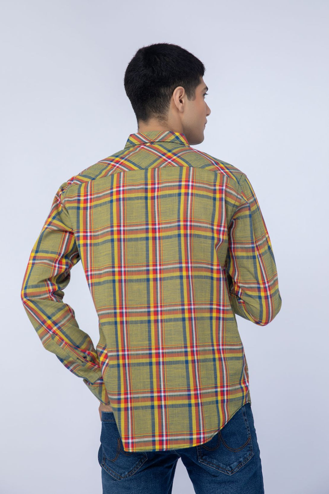 This yellow casual shirt is crafted from durable cotton fabric with a check-stripe pattern. It's the perfect combination of comfort and style.