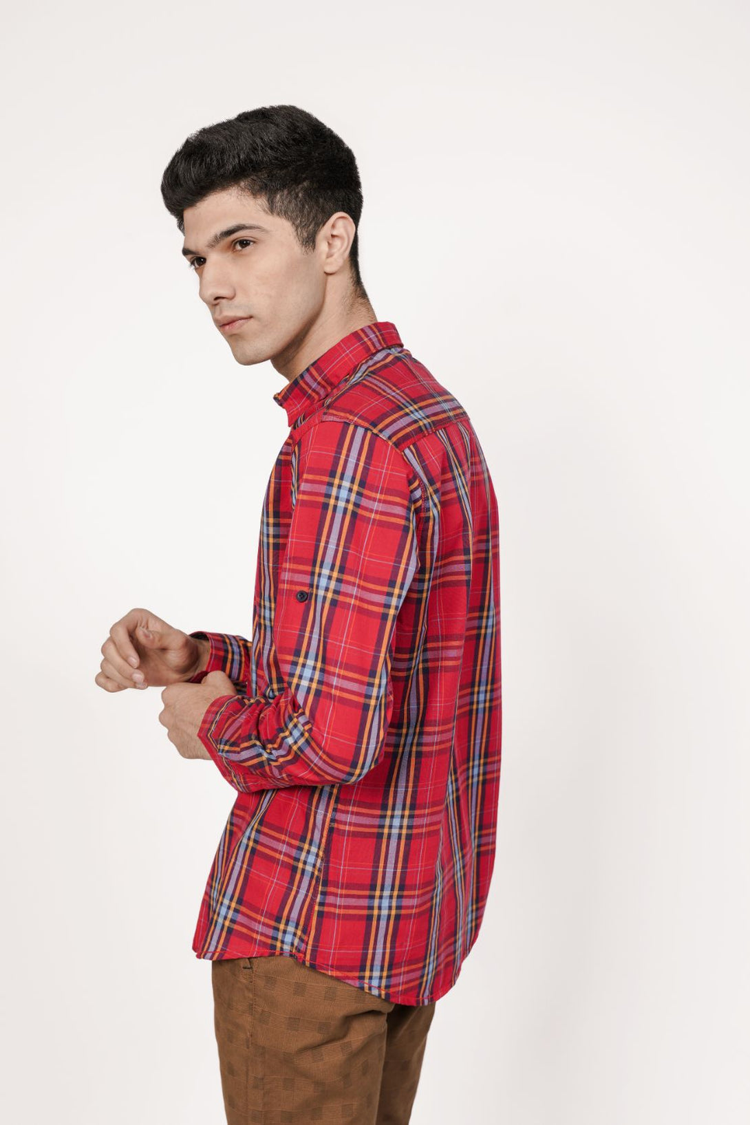 Stay stylish with this Red casual shirt, crafted from high-quality cotton and featuring a stylish stripe pattern. The breathable fabric helps keep you cool and comfortable even on the warmest days. It's the perfect look for any casual occasion.
