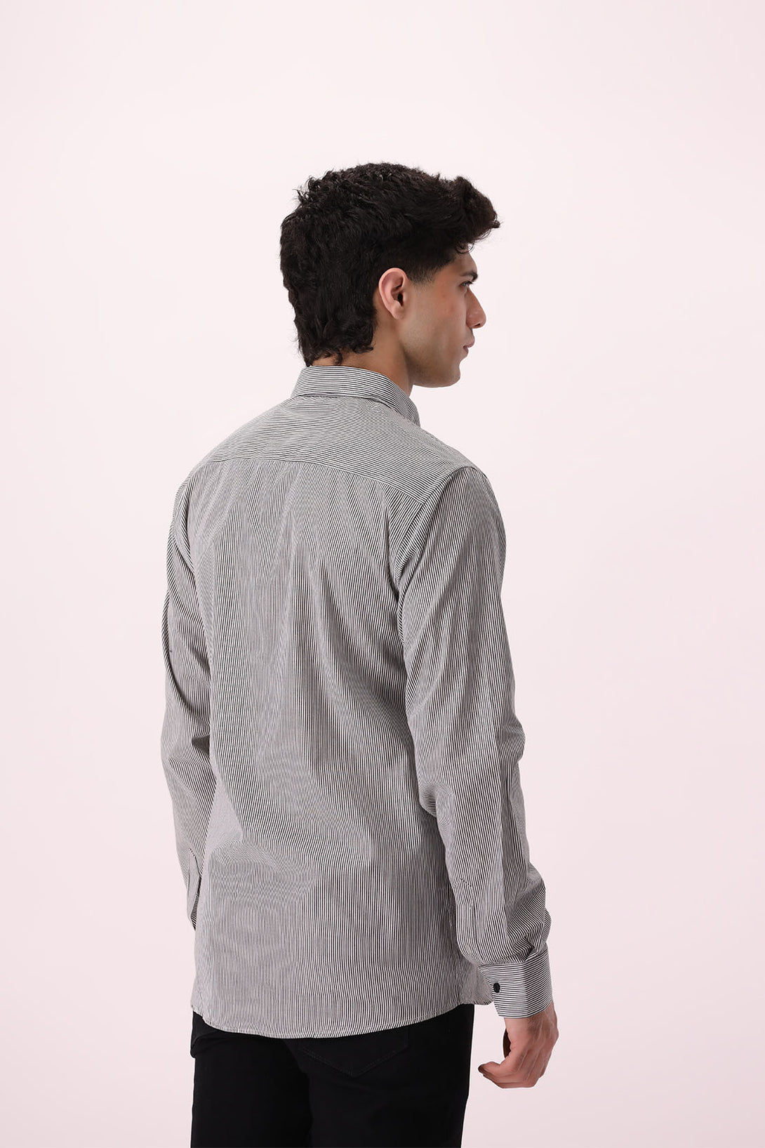 Get ready to make a statement with our Regular Fit Striped Button-Down Shirt. Crafted from high-quality Chambray, it features striped pattern, a button-down collar, full sleeves, and a round-cut hem. The perfect addition to elevate your wardrobe!