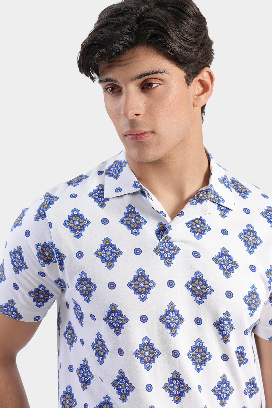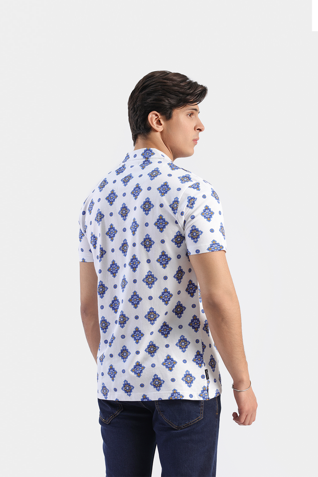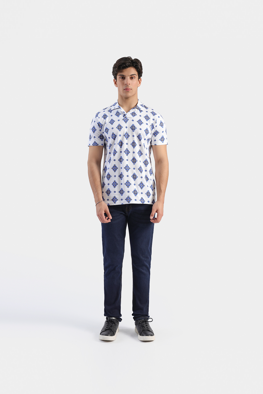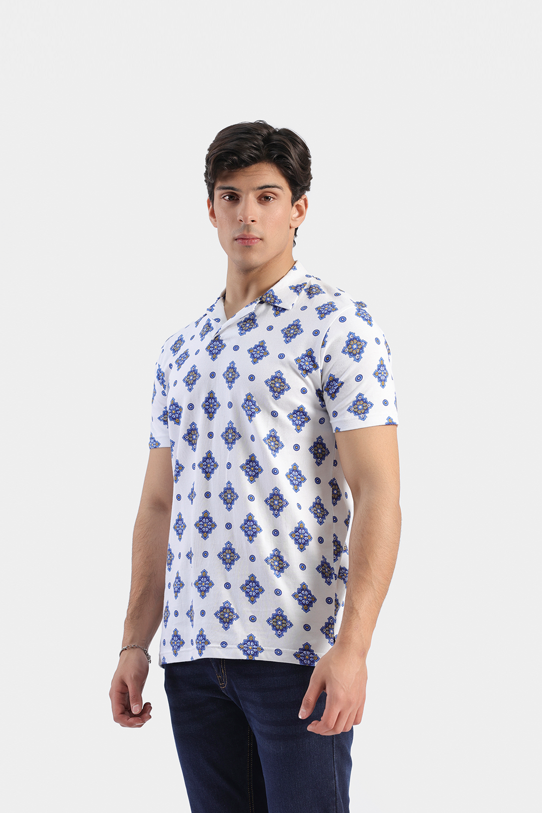 This printed men's polo shirt is made from high-quality jersey material, providing a comfortable and breathable fit. It features all over print and lapel collar adds a contemporary touch. Upgrade your wardrobe with this versatile and stylish shirt.