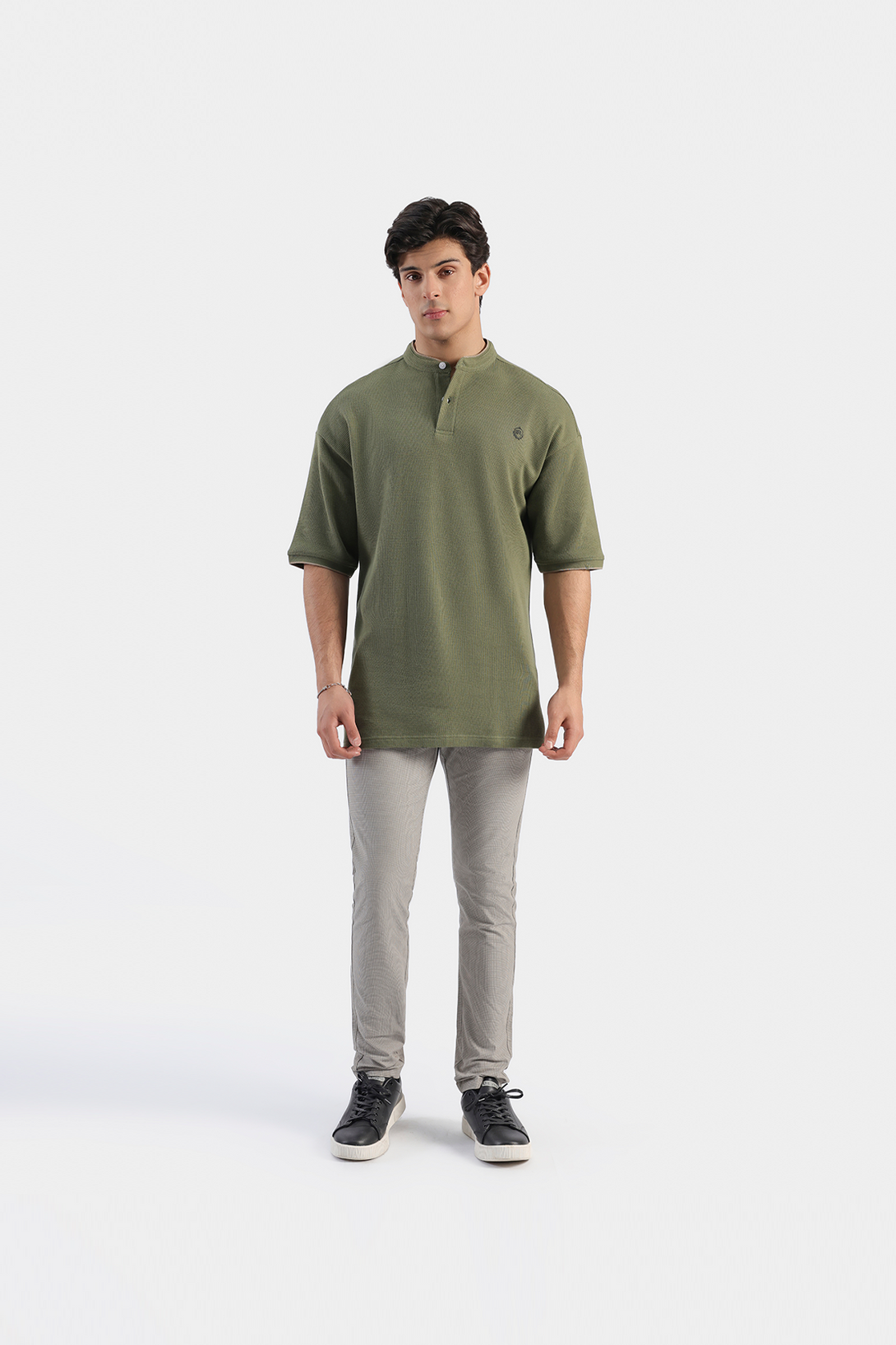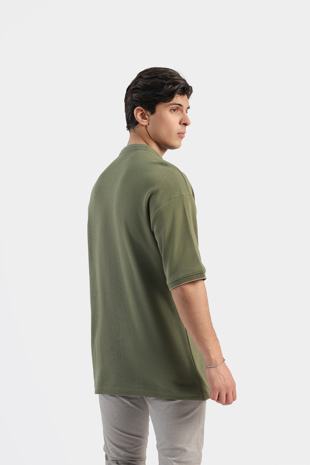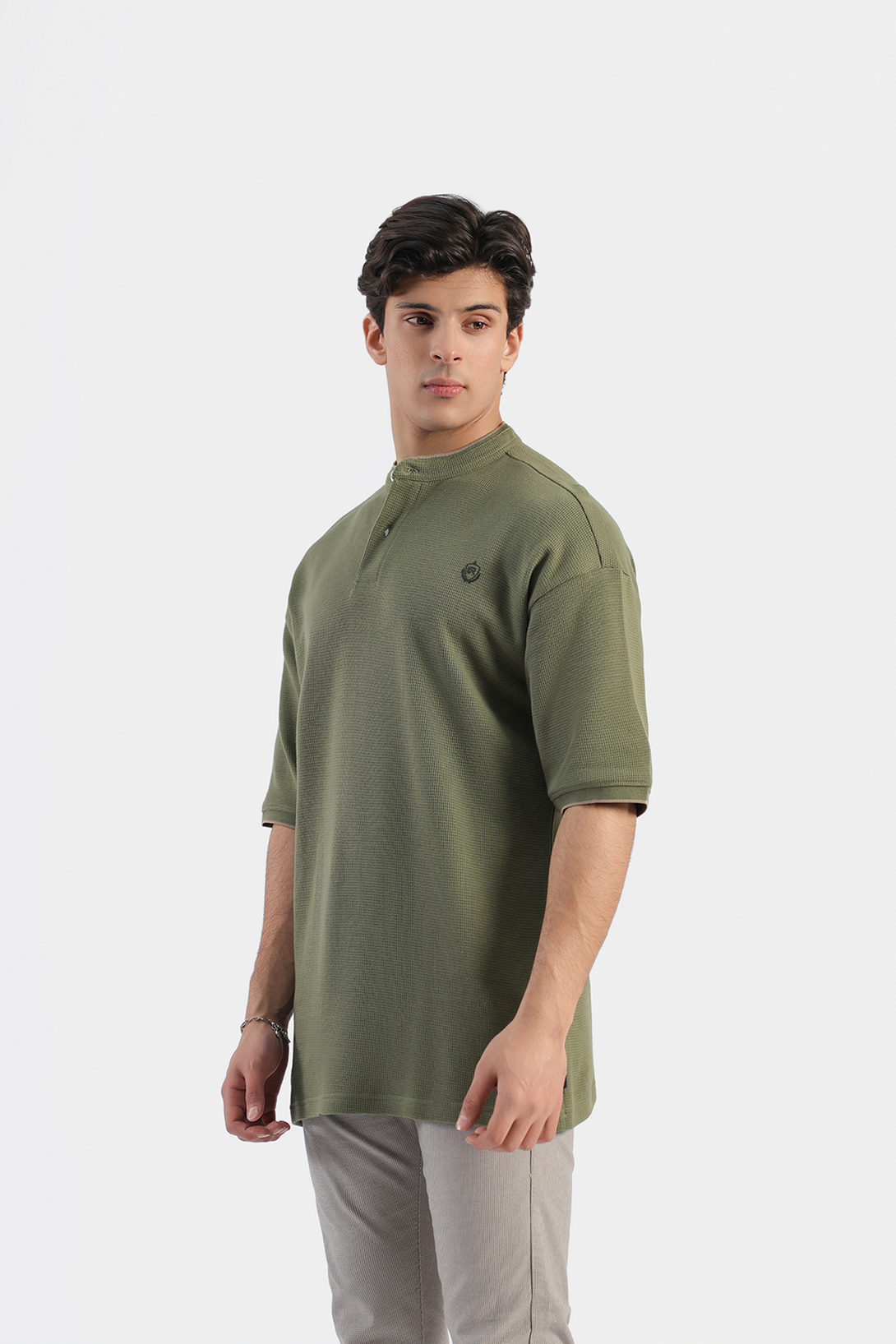 This T-shirt, made from premium thermal fabric features a classic Henley neck and relaxed drop-shoulder sleeves, it offers a comfortable, laid-back fit. Perfect for cooler days, this versatile piece is ideal for layering or wearing on its own for fashionable look.