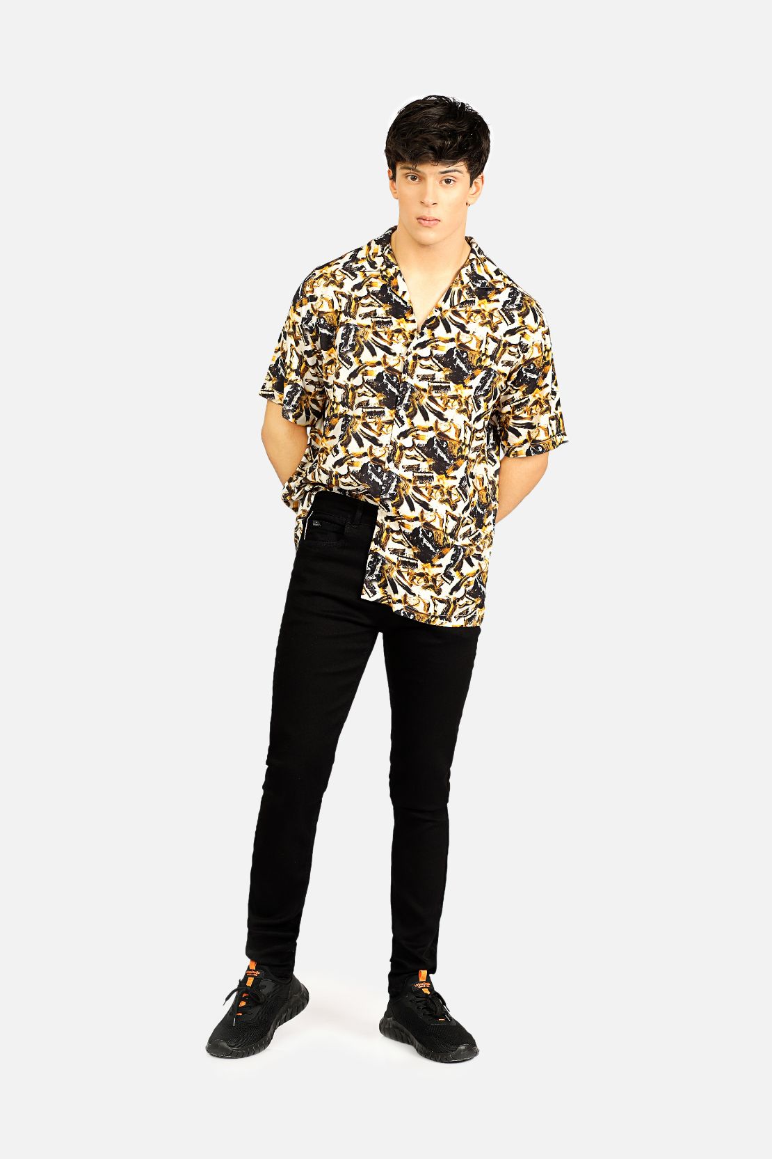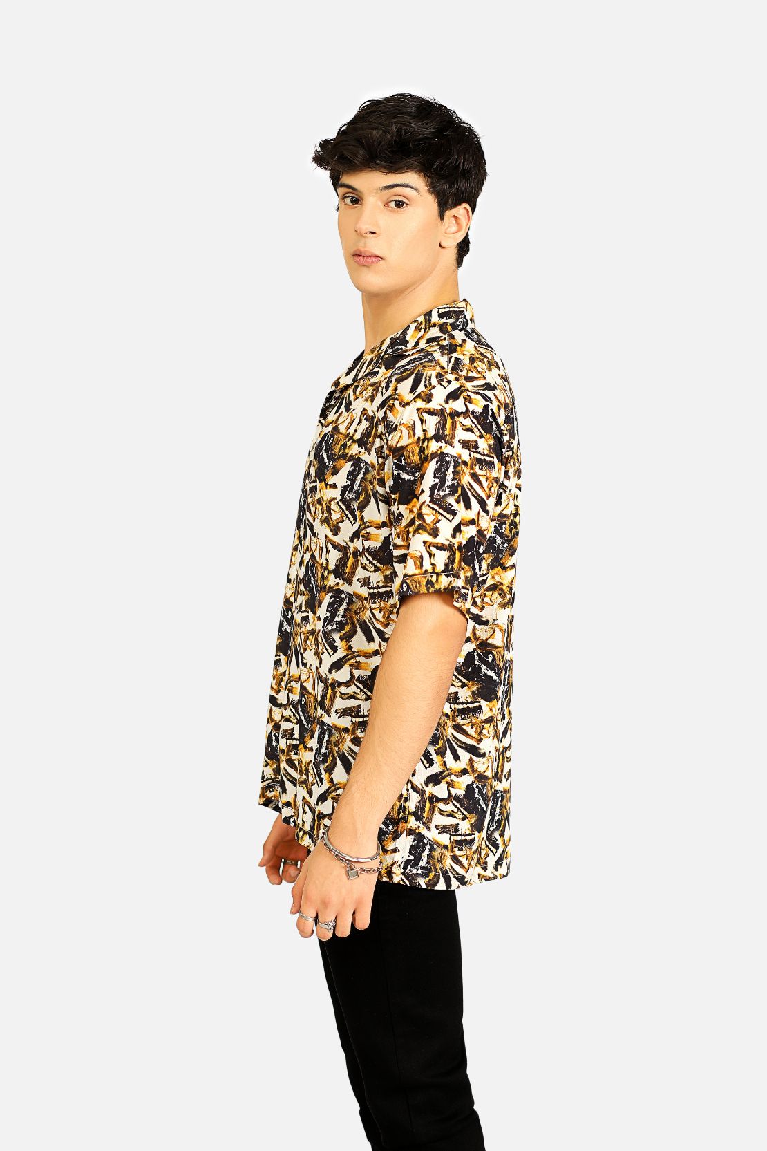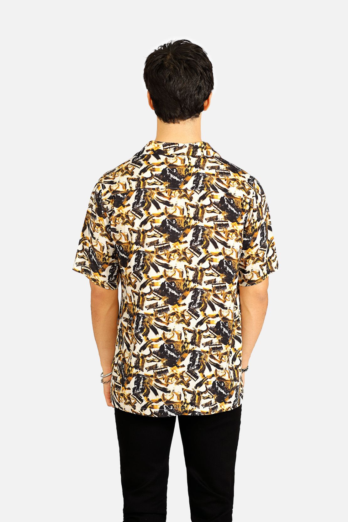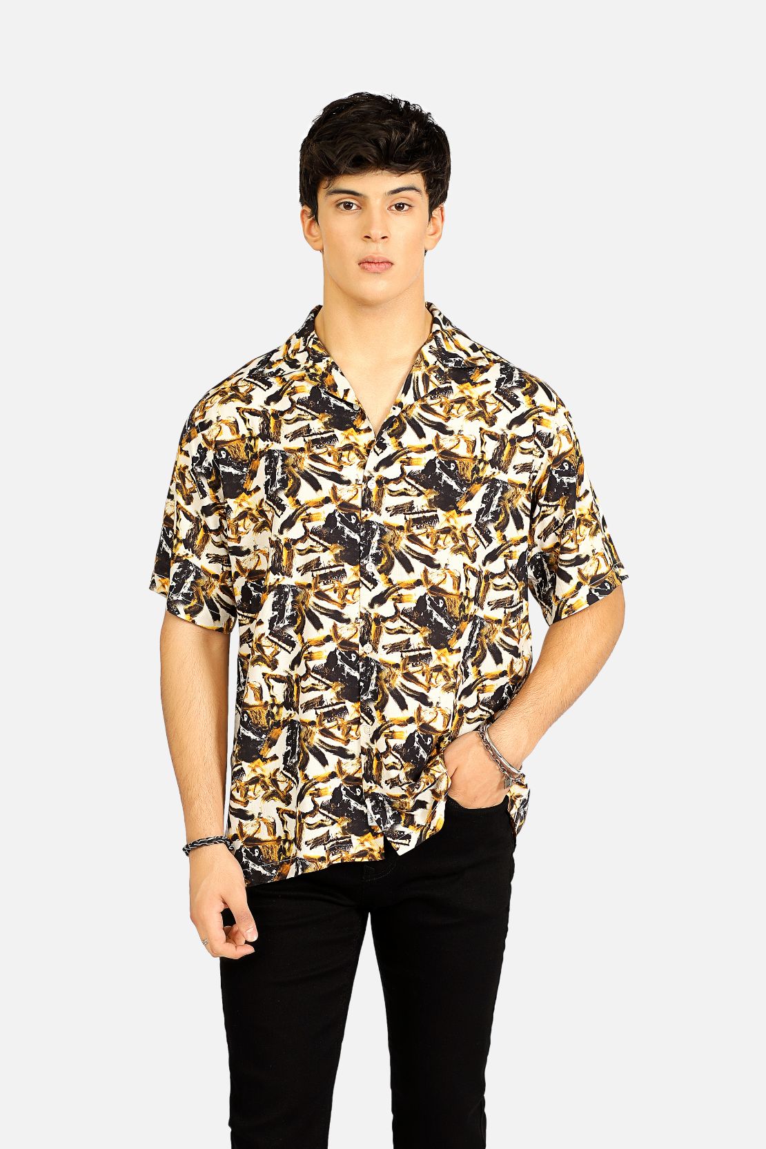 The RESORT COLLOR SHIRT is made from a lightweight viscose fabric with an abstract printed pattern that adds texture and visual interest. The fabric is breathable, so this shirt is perfect all-day comfort.