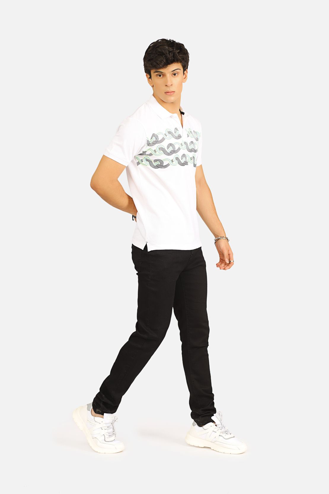 Look your best in this stylish navy polo shirt with a graphic Rob design. Constructed from a comfortable and breathable pique cotton fabric, this shirt is ideal for the outdoors. Enjoy an unbeatable combination of comfort and style with this classic piece.