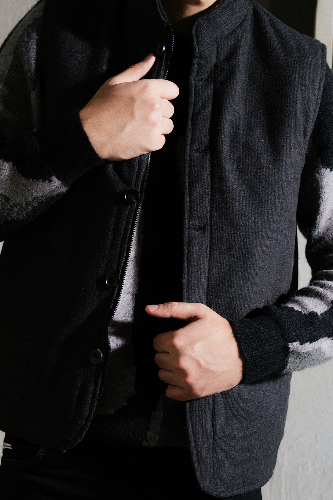 This men's sleeveless jacket is made with a durable and stylish wool blend, providing both warmth and comfort. The high-quality material ensures long-lasting wear and a classic look. Perfect for layering or as a standalone piece, this jacket is a must-have for every wardrobe.