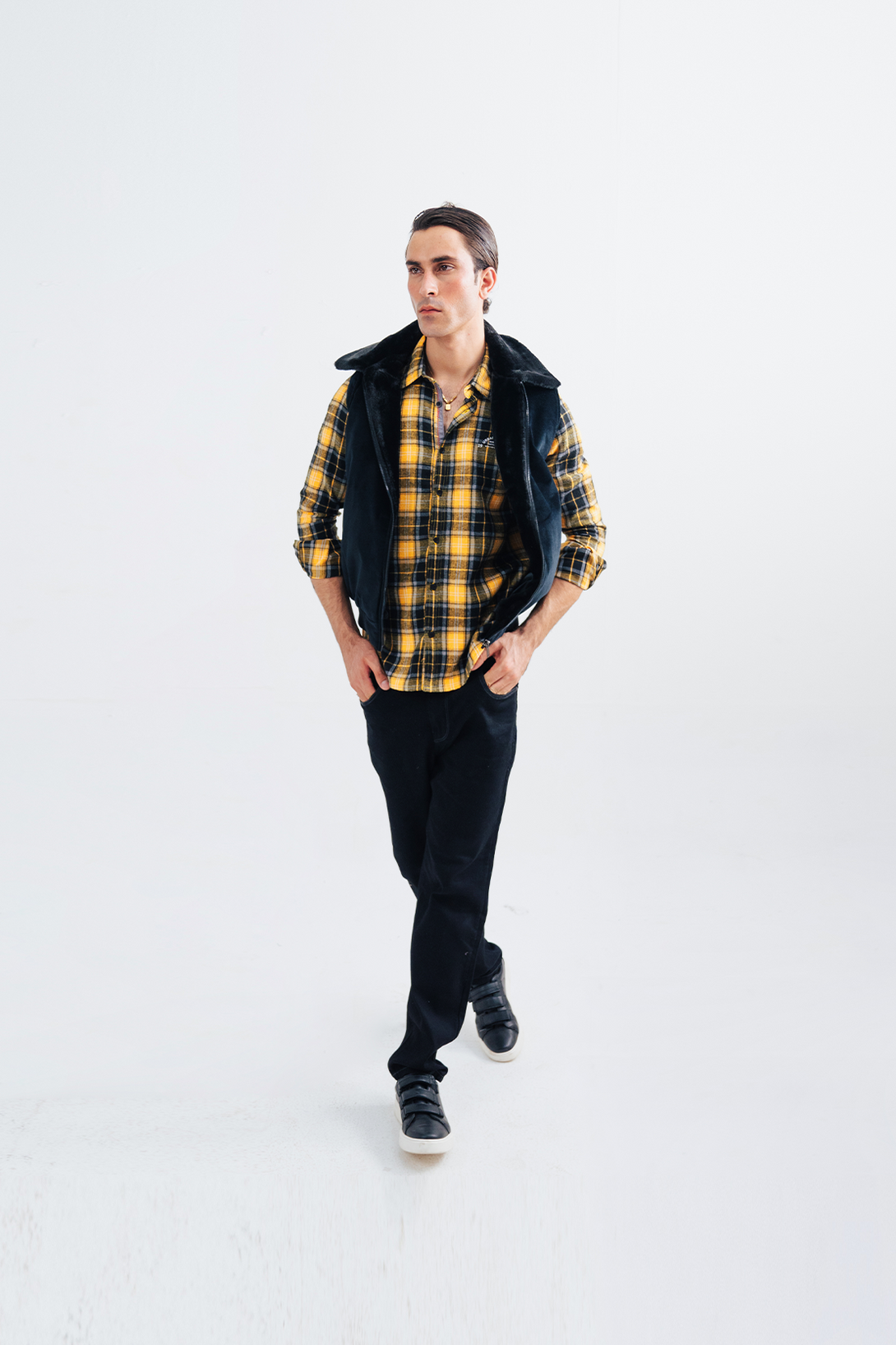 This men's sleeveless jacket is made of high-quality velvet material, providing a comfortable and stylish addition to any outfit. The soft and luxurious fabric gives a sophisticated touch, making it perfect for any occasion. Stay warm and fashionable with this must-have piece for your wardrobe.