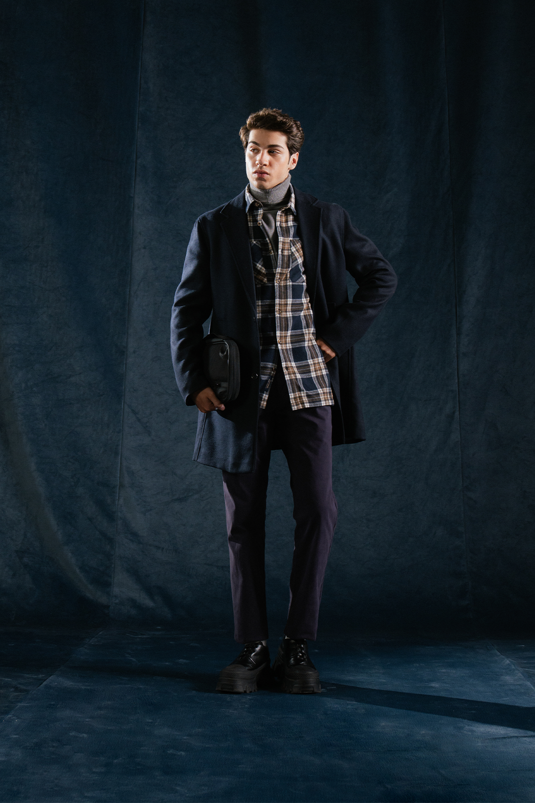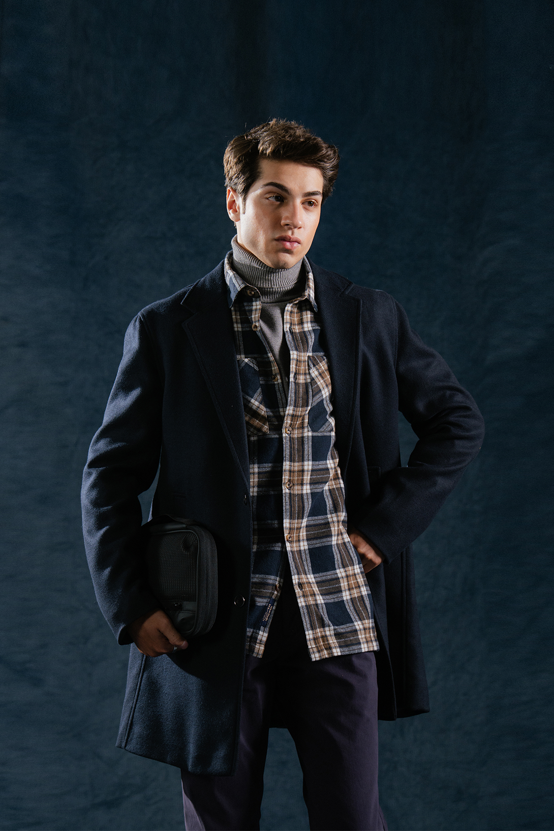 Expertly crafted from a wool blend, this men's slim-fit long coat is designed for timeless style and durability. The high-quality fabric provides warmth and comfort while maintaining a sleek, tailored look. Elevate your wardrobe with this sophisticated outerwear option.