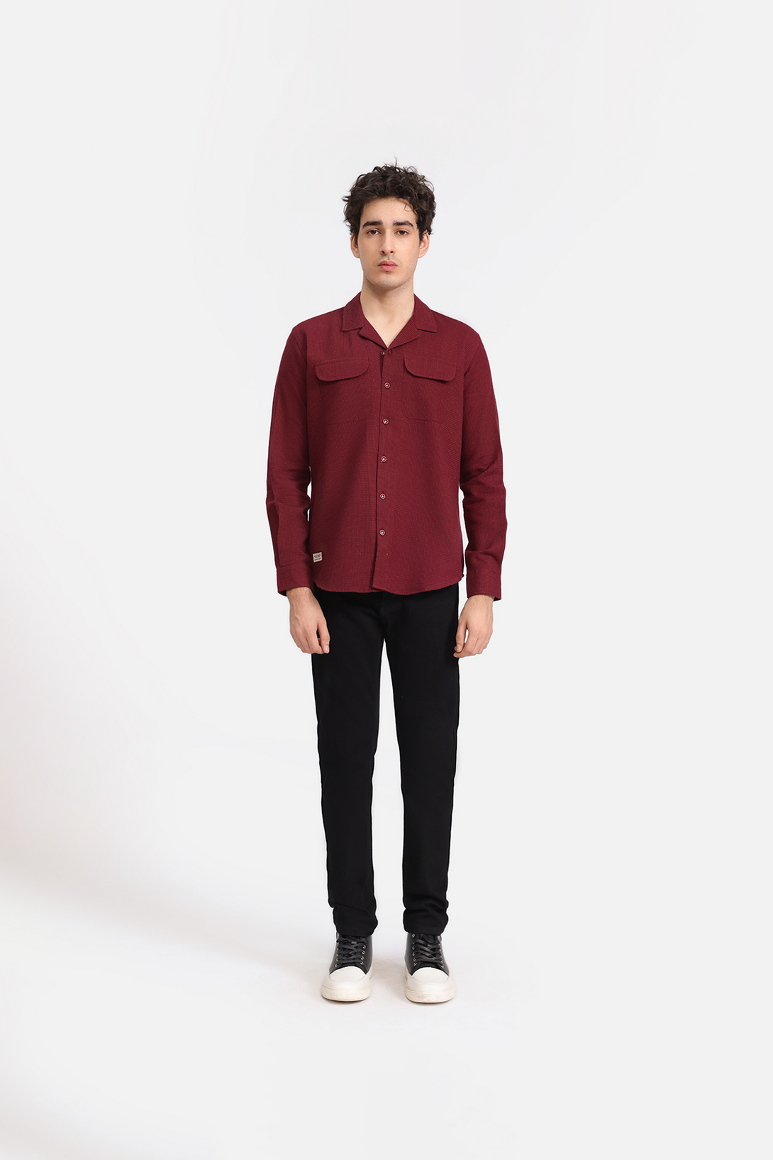 This cotton camp collar shirt features two chest flap pockets, long sleeves, and buttoned cuffs for a clean, utilitarian look. Lightweight and easy to style, it’s perfect for both casual and elevated everyday wear.