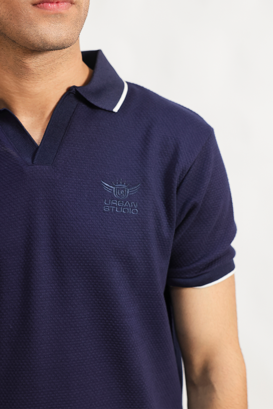Crafted from woofle fabric, this Cuban collar polo shirt offers a textured feel