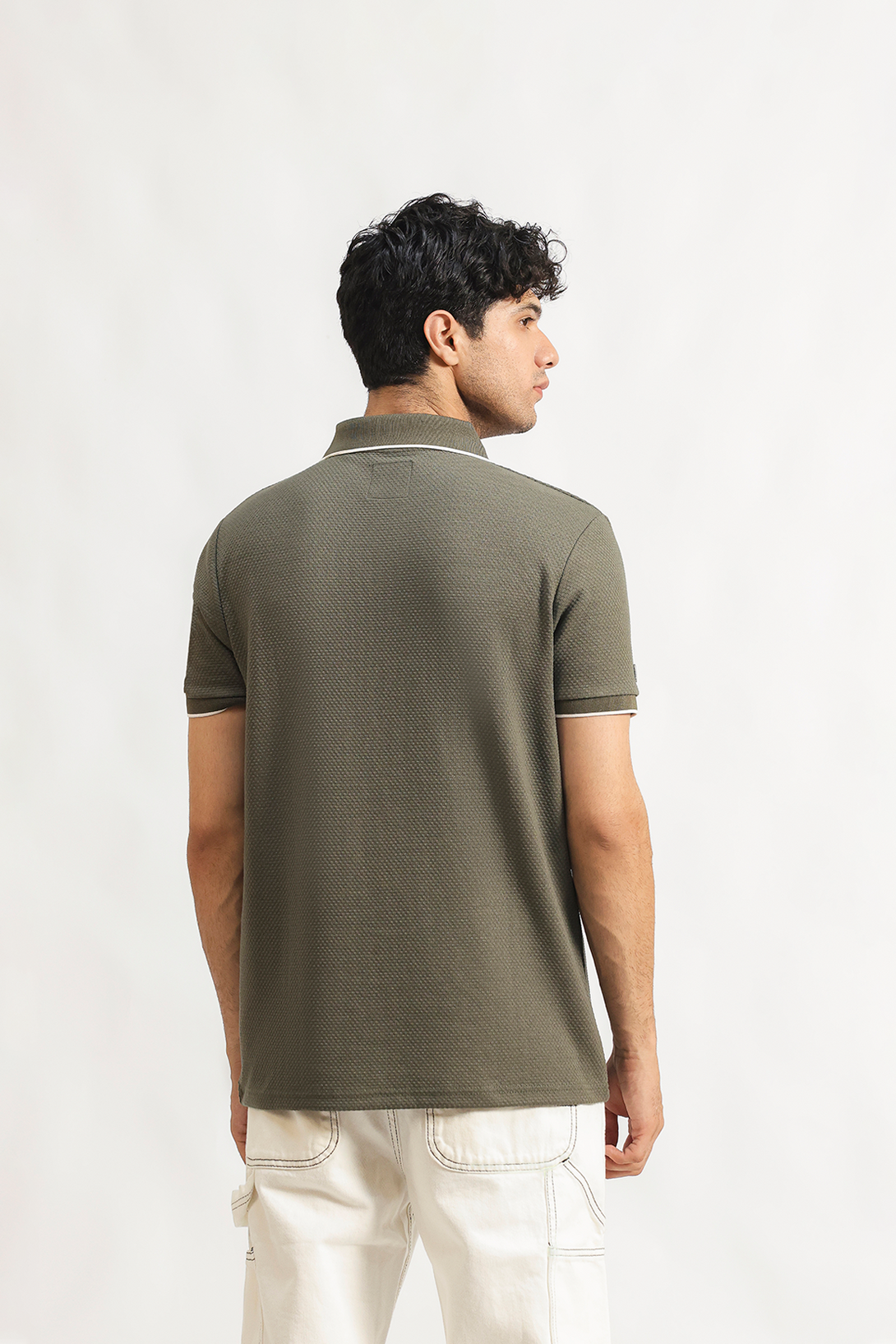 and breathable comfort. The design features contrast tipping at the collar and sleeves,