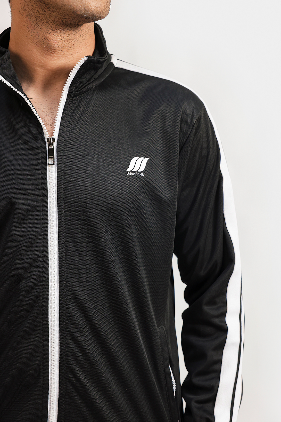 This polyester fleece track suit features a sleek zip-up jacket and tapered pants with standout color-block detailing. Designed for comfort and movement, the soft and breathable fabric makes it ideal whether you're on the go or laying low. With a slim fit, elastic cuffs, and bold sleeve and leg panels, it's the perfect blend of style and functionality for everyday wear or workouts.