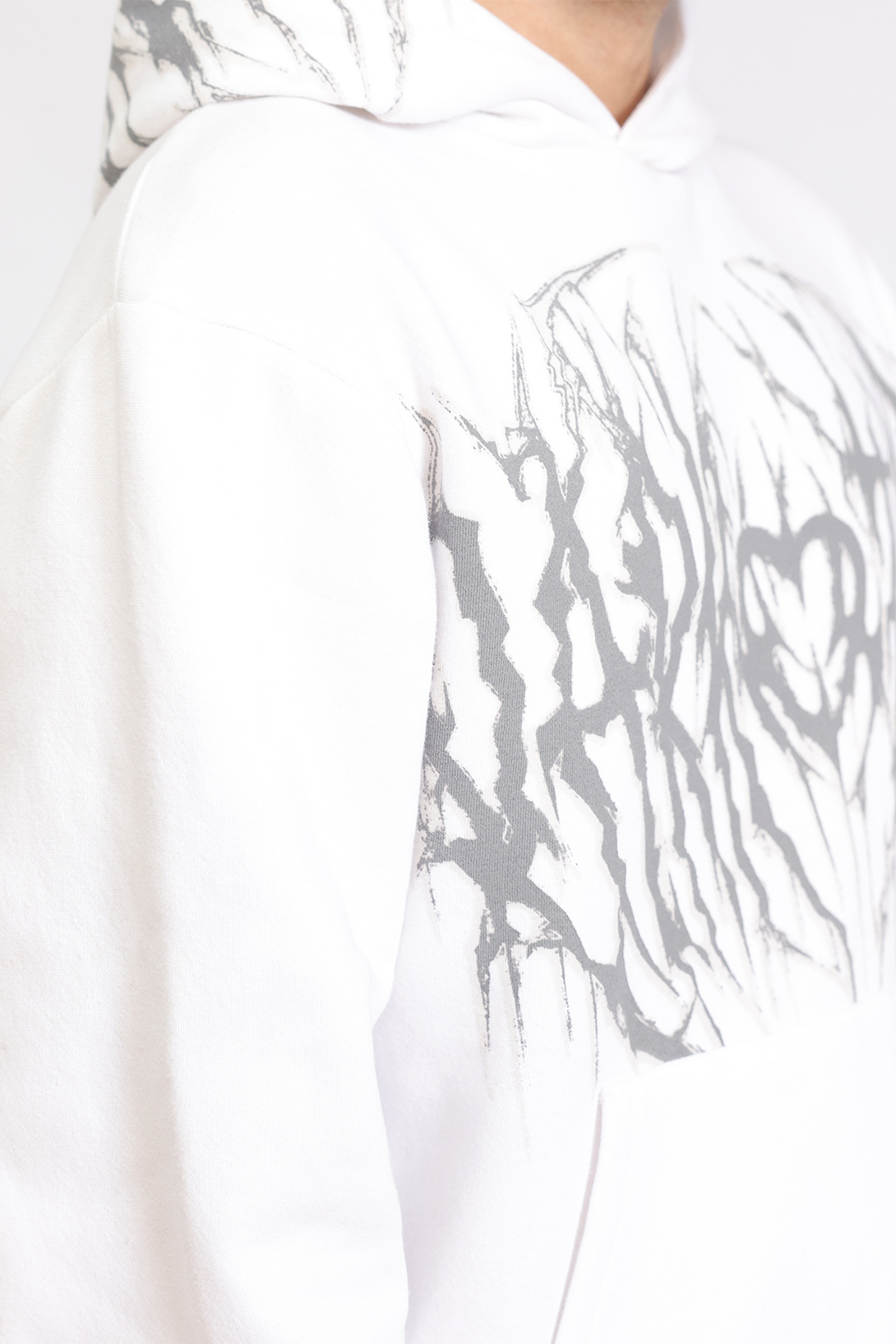 A cozy staple for casual days, this fleece hoodie features bold graphic prints, a hood, and kangaroo pocket for practical style. With long cuffed sleeves and a relaxed fit, it’s perfect for layering or wearing solo for effortless comfort and street-ready vibes.