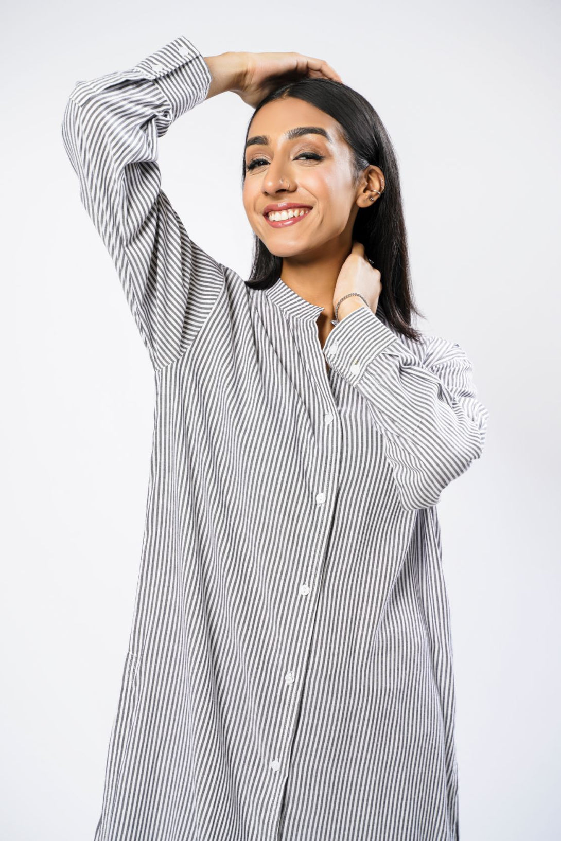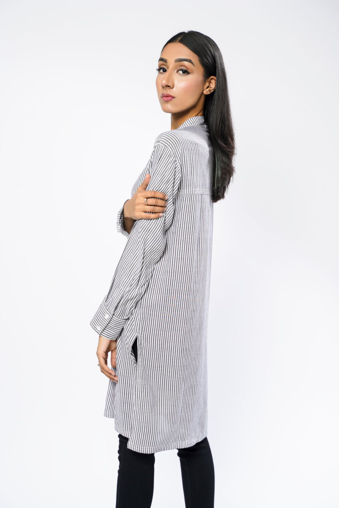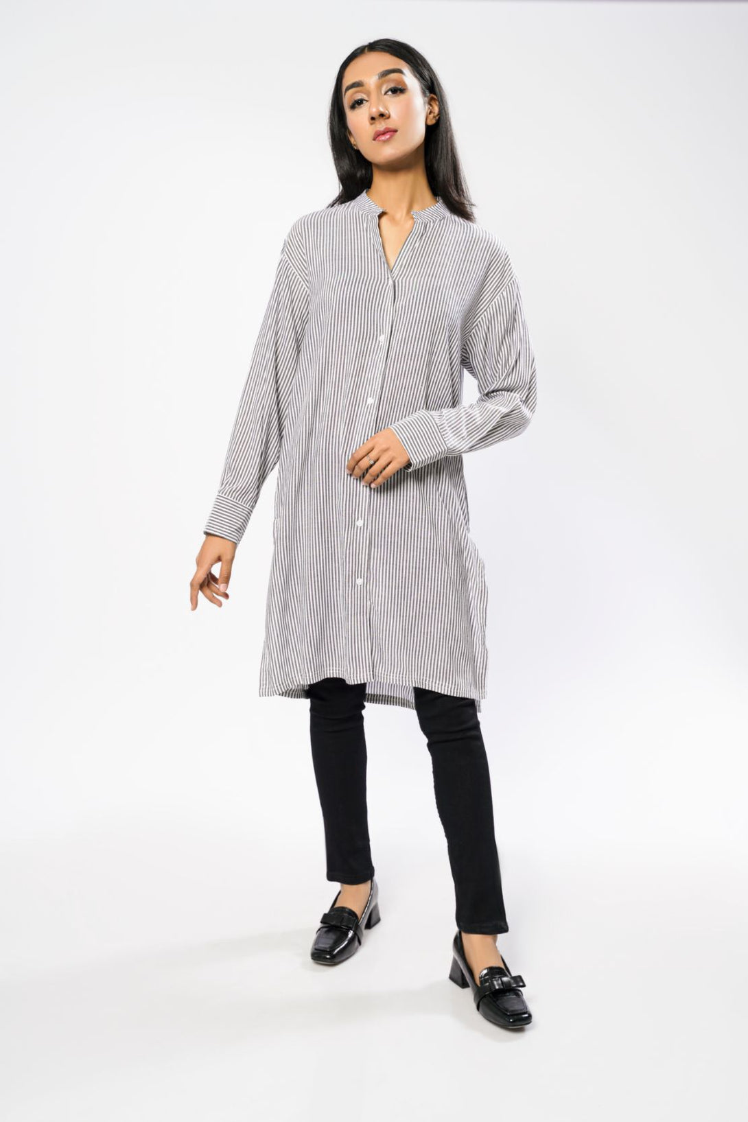 This grey long shirt is constructed from high-quality cotton fabric for lasting comfort. The subtle stripe pattern adds a subtle style element, elevating any casual look.
