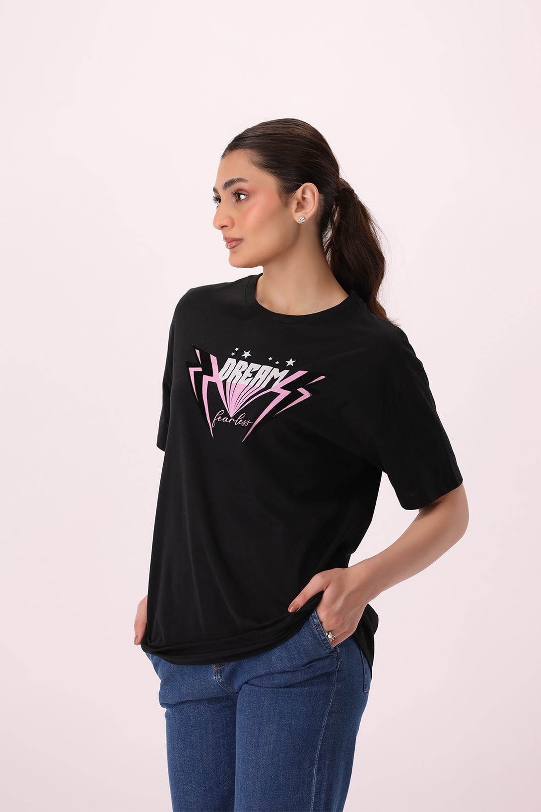 Keep it effortless and comfy with our Printed Oversize T-Shirt having crew neck and short sleeves. Made with high-quality jersey fabric it is perfect for those who love a casual yet chic style.