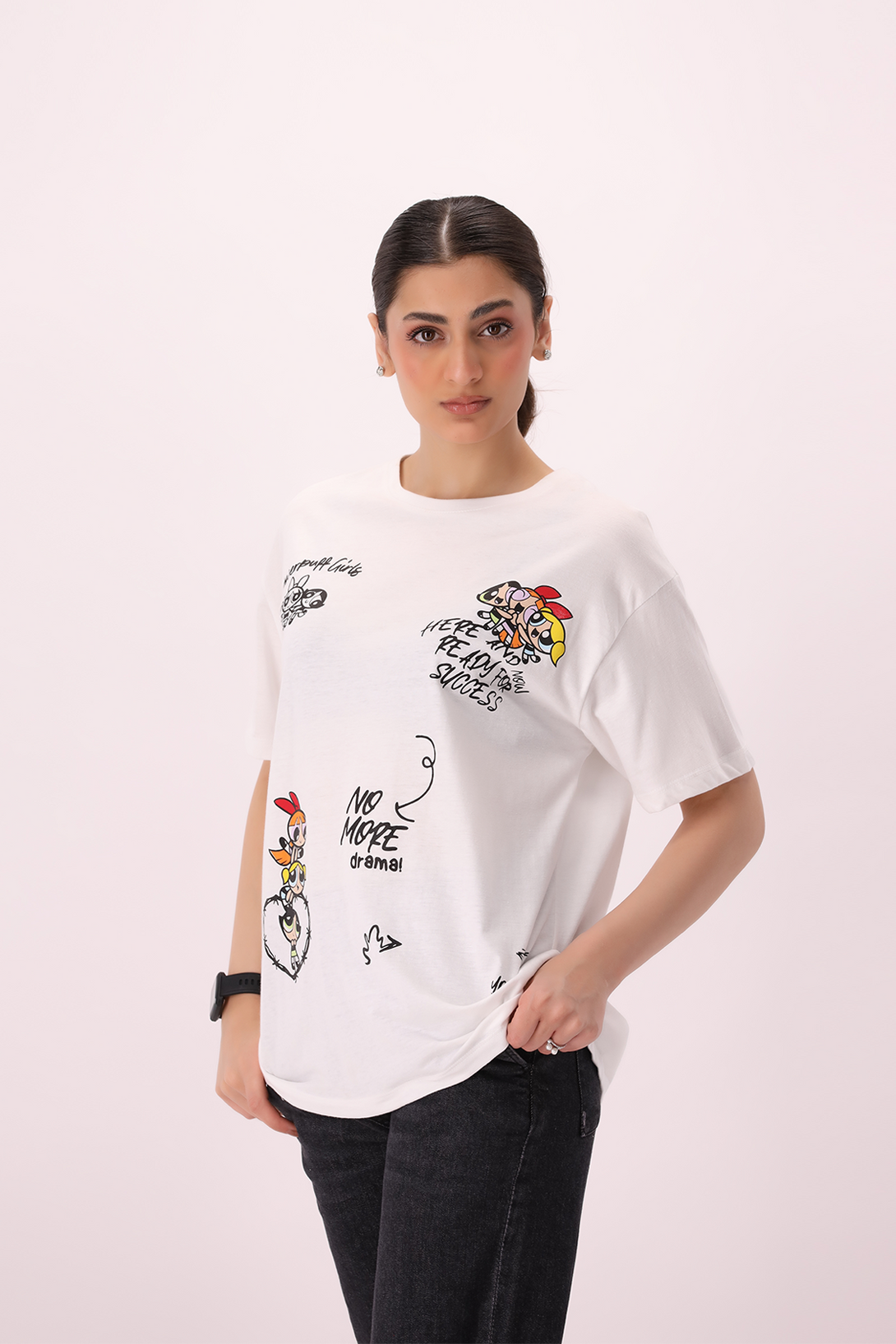 Keep it effortless and comfy with our Power puff Girls Printed Oversize T-Shirt having crew neck and short sleeves. Made with high-quality jersey fabric it is perfect for those who love a casual yet chic style.