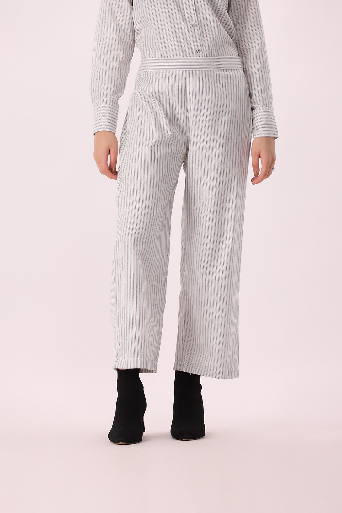 Crafted from soft and breathable cotton, this trouser features wide leg design for convenience. With its flattering silhouette and striped pattern, whether you’re running errands, working from home, or enjoying a casual day out, this trouser is your go-to choice for any occasion.