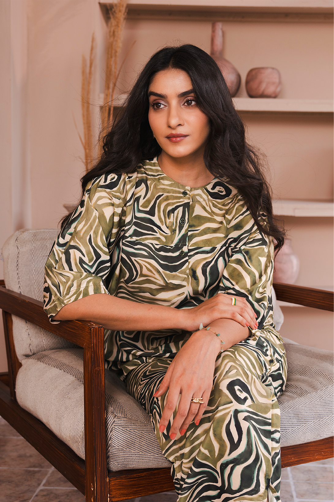 This Printed Co-ord Set Shirt is crafted from high-quality polyester lawn, offering a lightweight and breathable fabric ideal for warm weather. Its smooth texture ensures comfort throughout the day, while the printed design adds a stylish and contemporary touch. Perfect for pairing with matching bottoms, this top combines elegance with practicality for a polished, coordinated look.