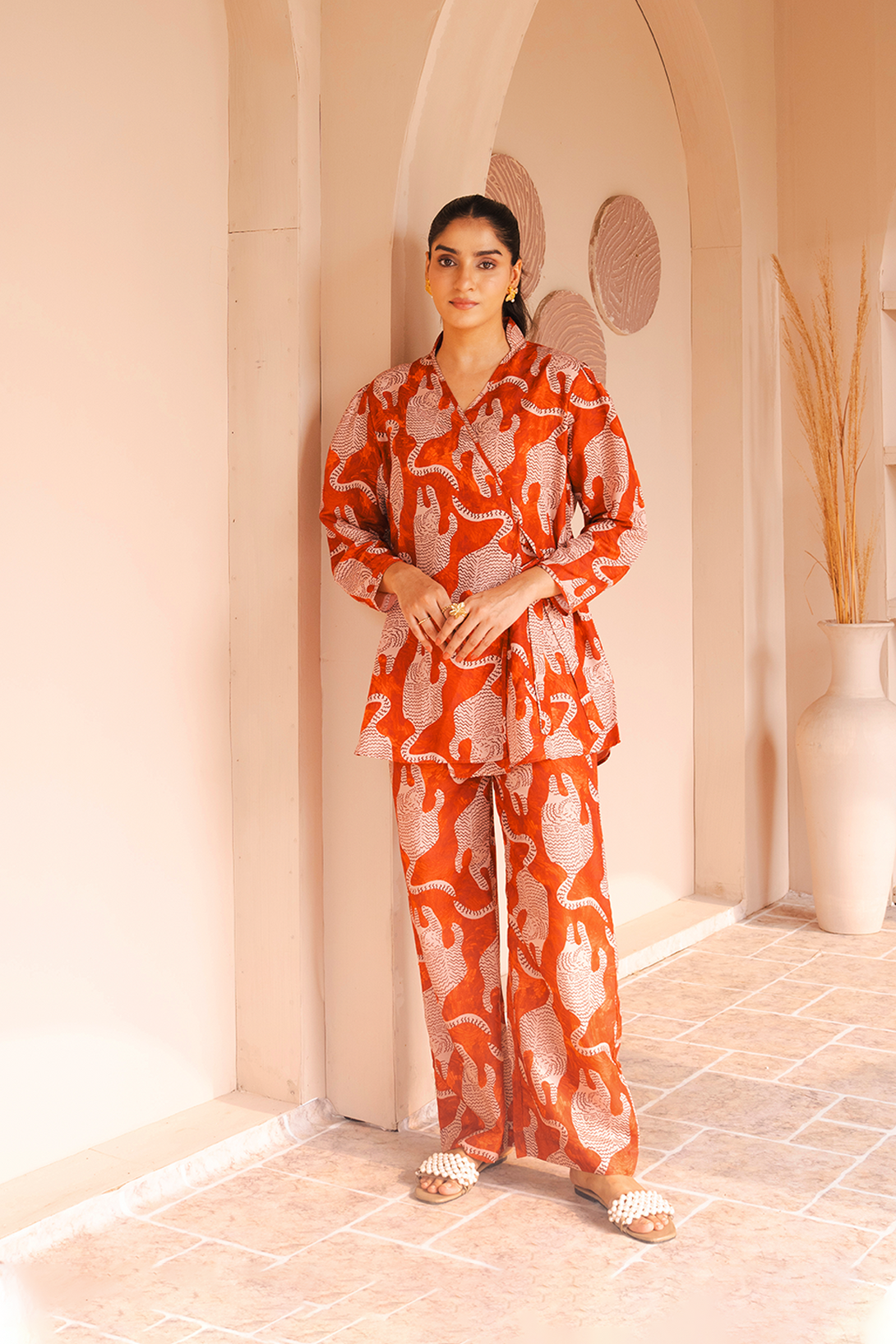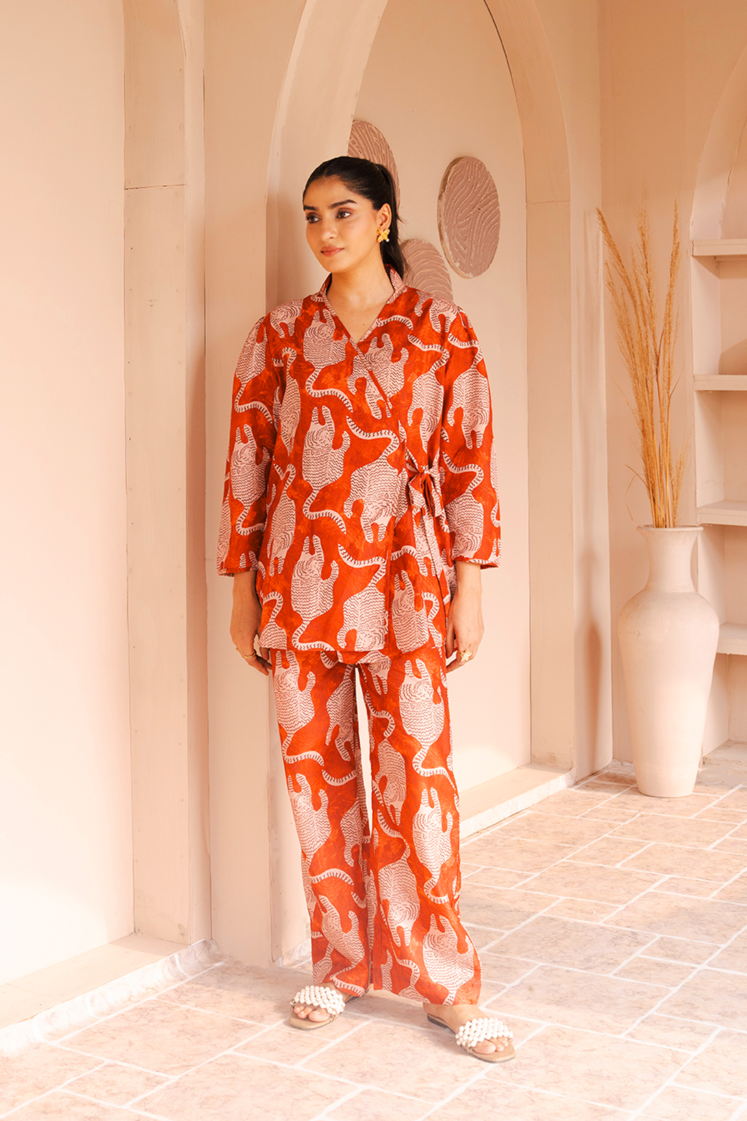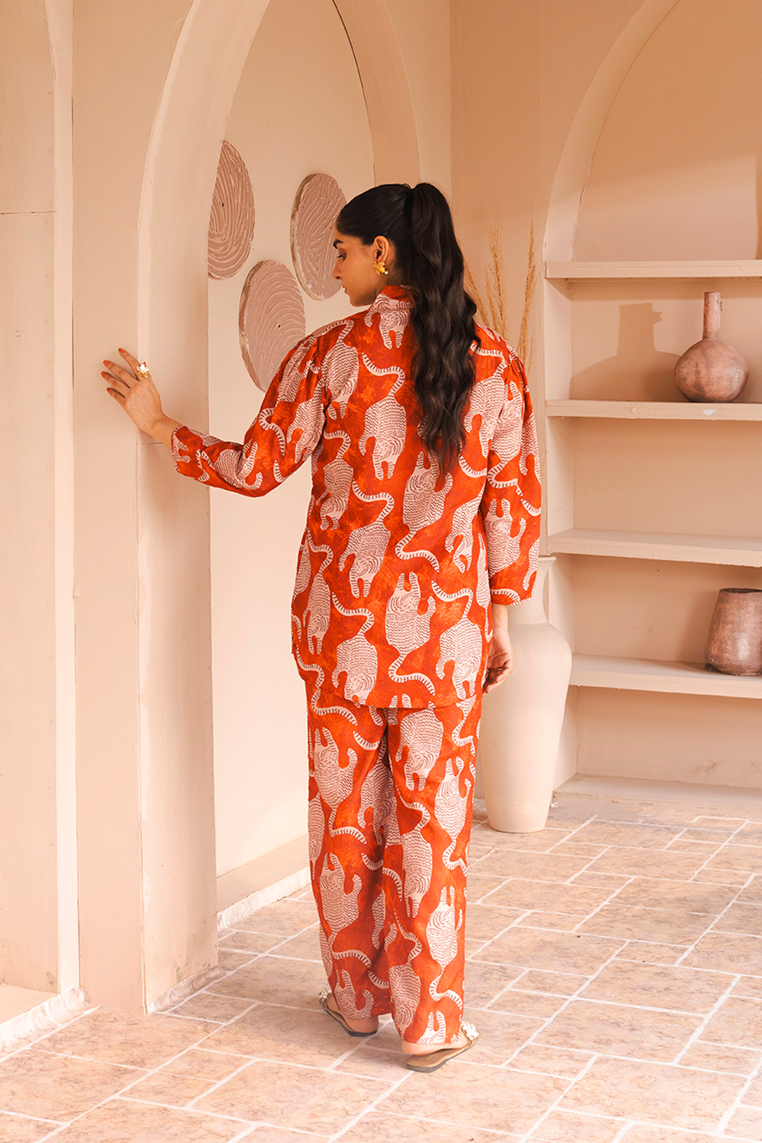 This Printed Co-ord Set Top is crafted from high-quality polyester lawn, offering a lightweight and breathable fabric ideal for warm weather. Its smooth texture ensures comfort throughout the day, while the printed design adds a stylish and contemporary touch. Perfect for pairing with matching bottoms, this top combines elegance with practicality for a polished, coordinated look.