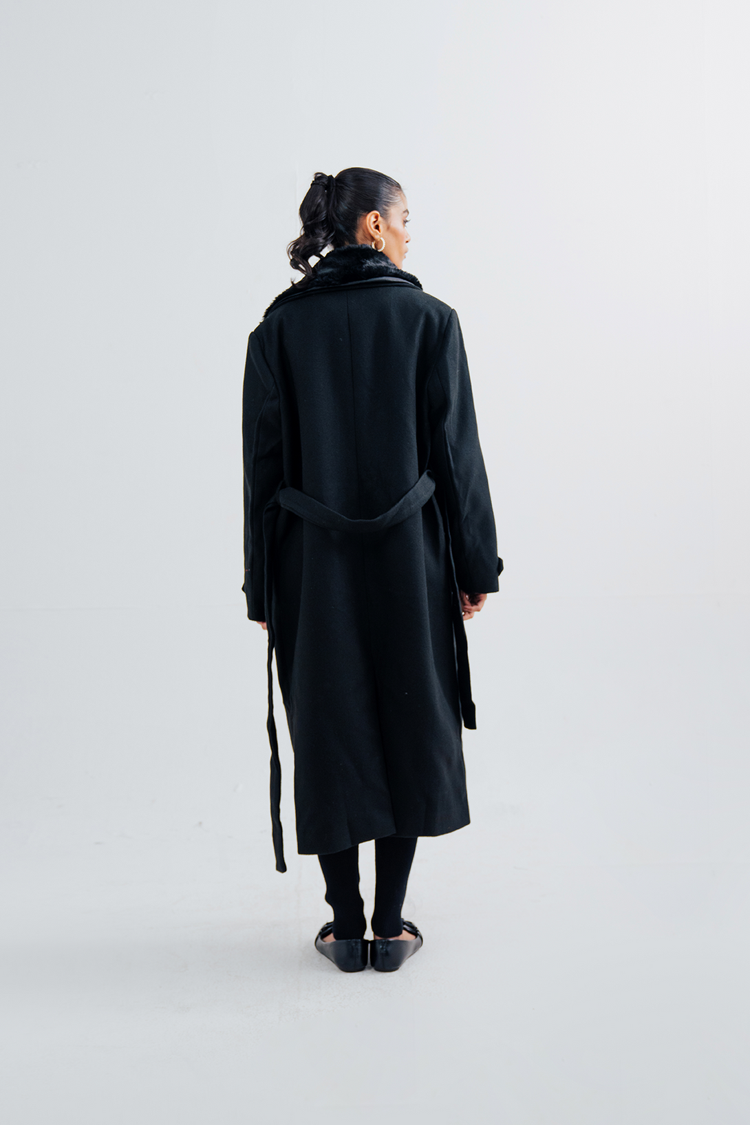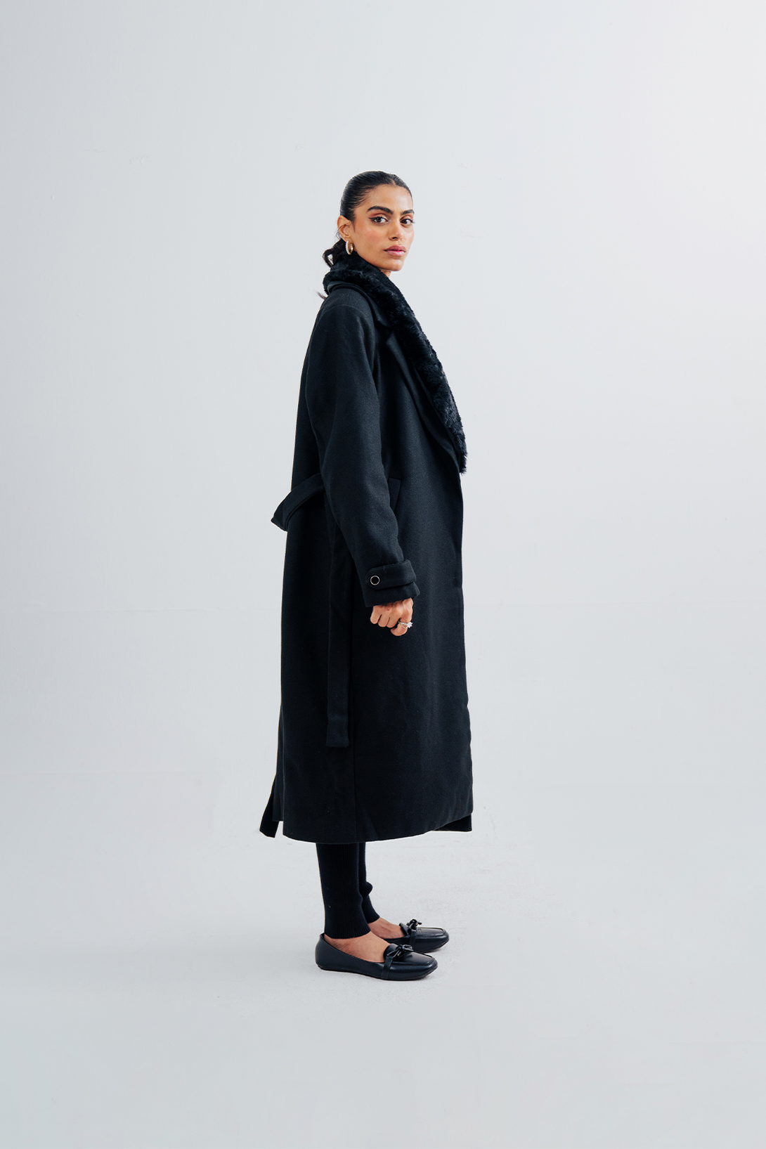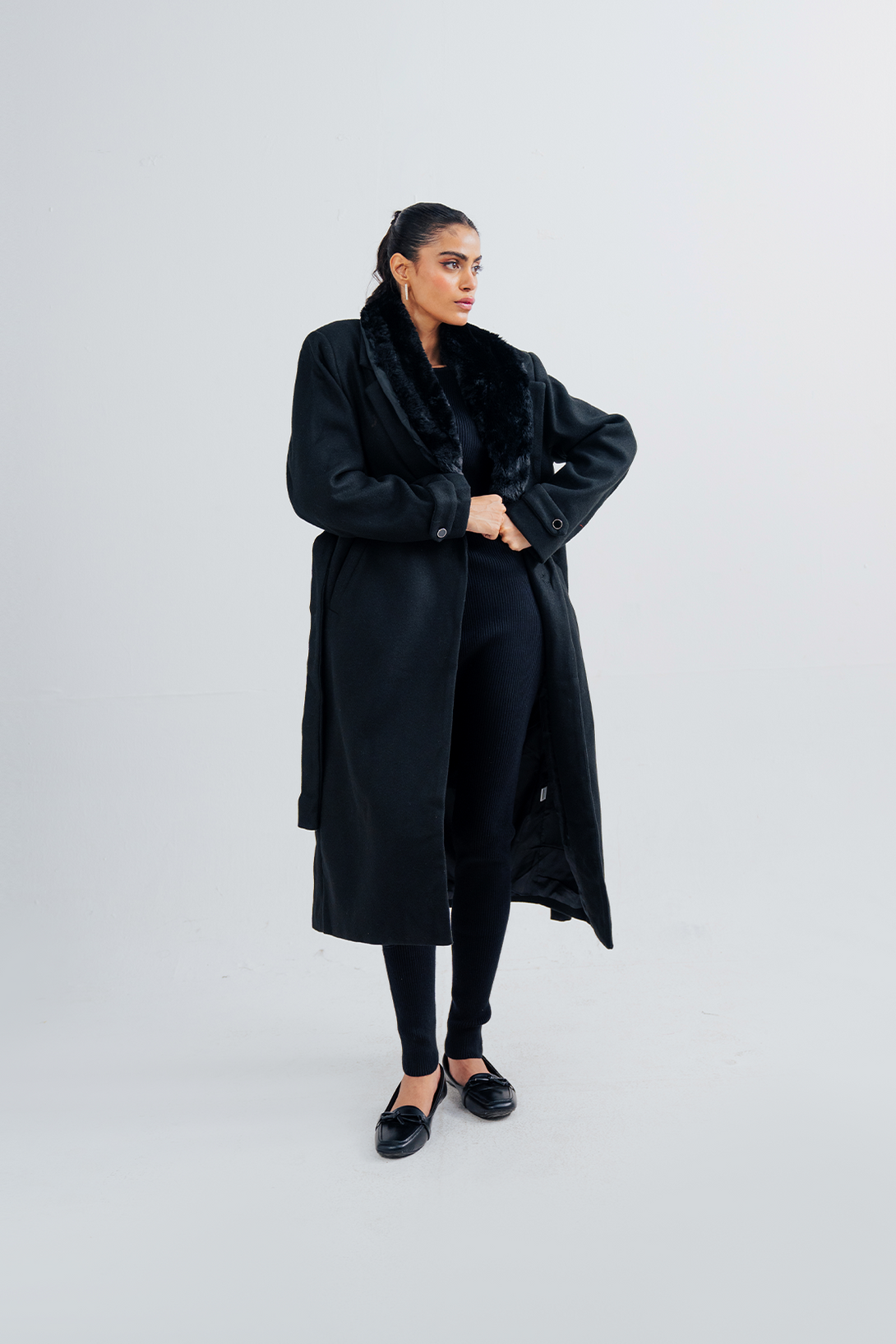 Ladies Fur Collar Long Coat