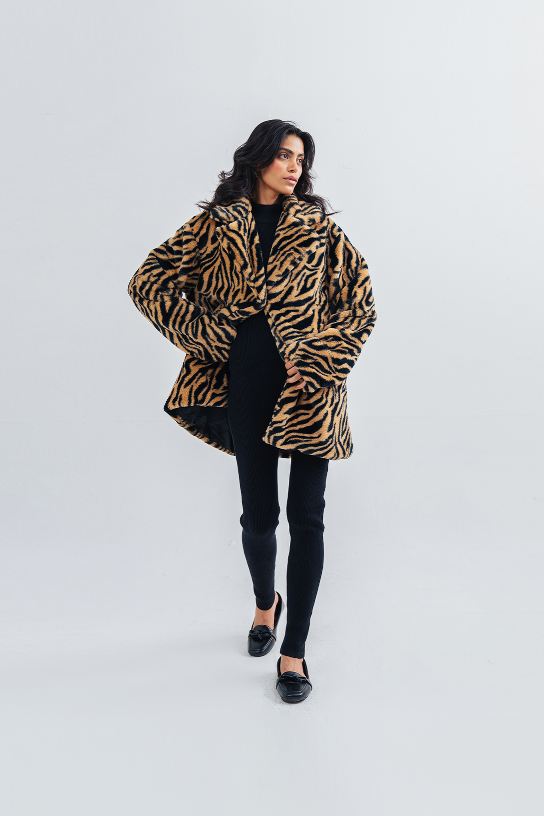 Ladies Tiger Print Long Coat