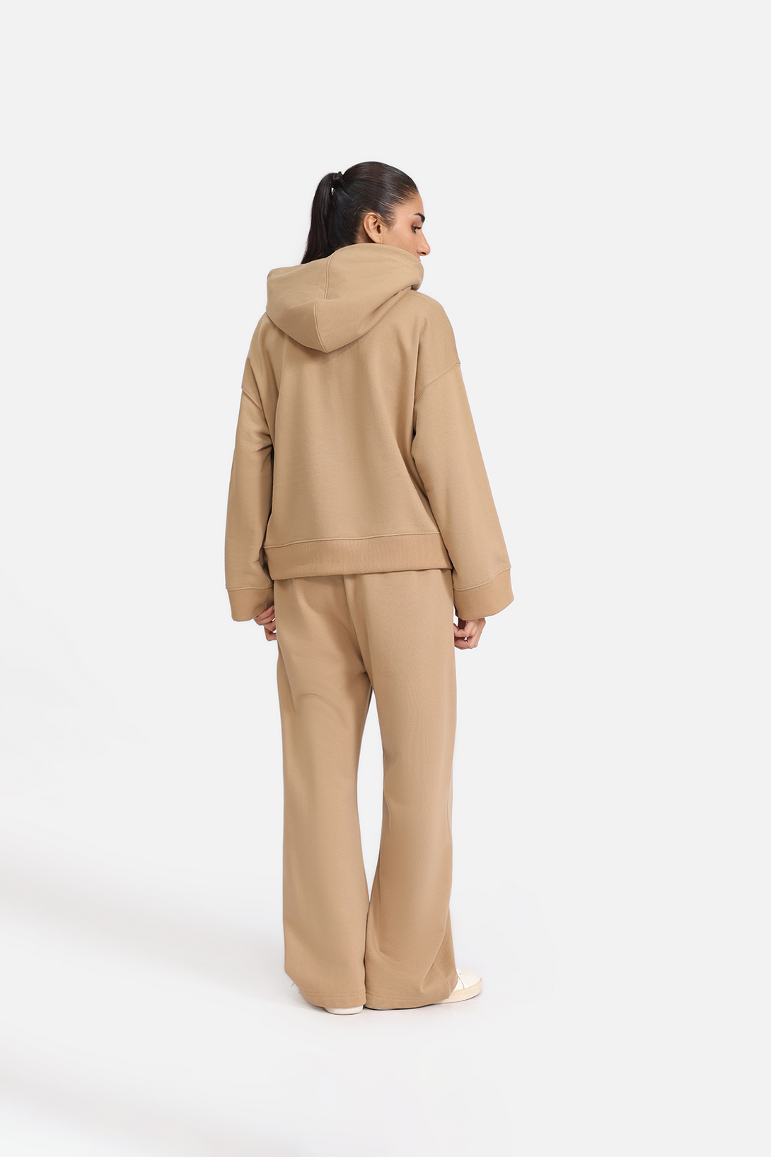 Comfortable wide-leg trousers made from fleece fabric. Designed with a relaxed fit, an easy pull-on style, a drawstring waistband, and side pockets for added practicality. These trousers offer warmth and ease. Perfect for elevated casual wear or coordinated loungewear looks.