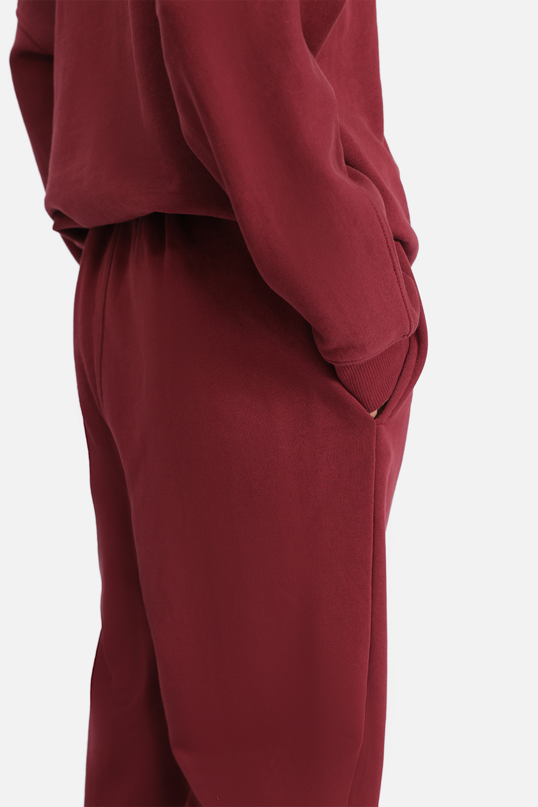 Comfortable trousers made from warm fleece fabric, featuring a refined front pleat and a straight-leg silhouette. A versatile piece that completes the coord set with a polished yet relaxed finish.