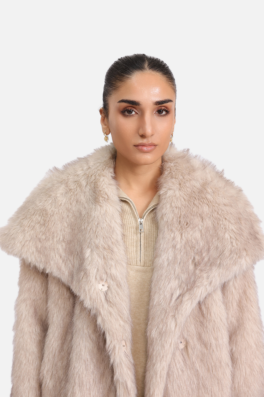 A luxurious fur jacket designed with an oversized collar and a relaxed silhouette. Soft, warm, and plush to the touch, it offers effortless style and comfort. Perfect for elevating winter looks with a bold, cozy finish.