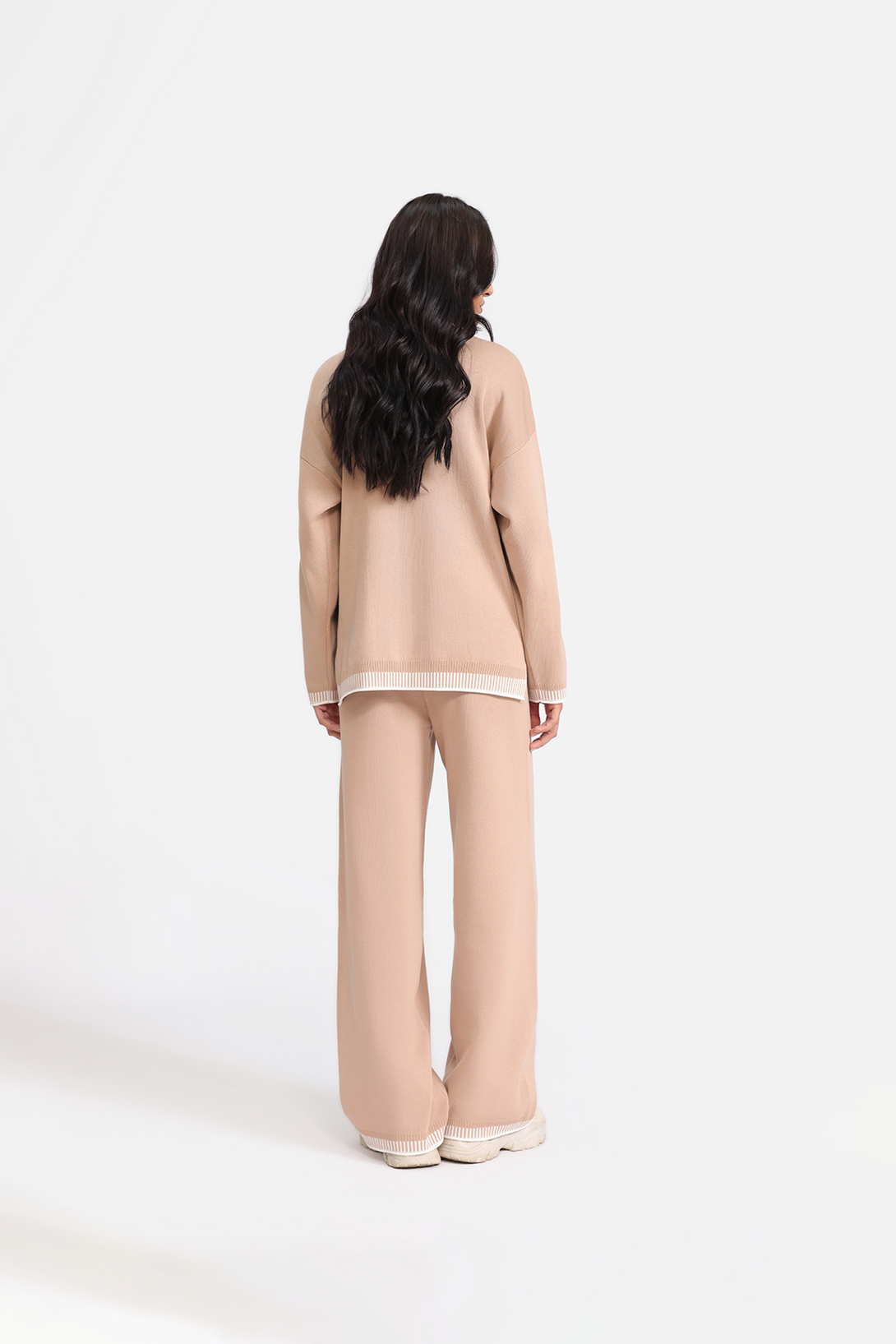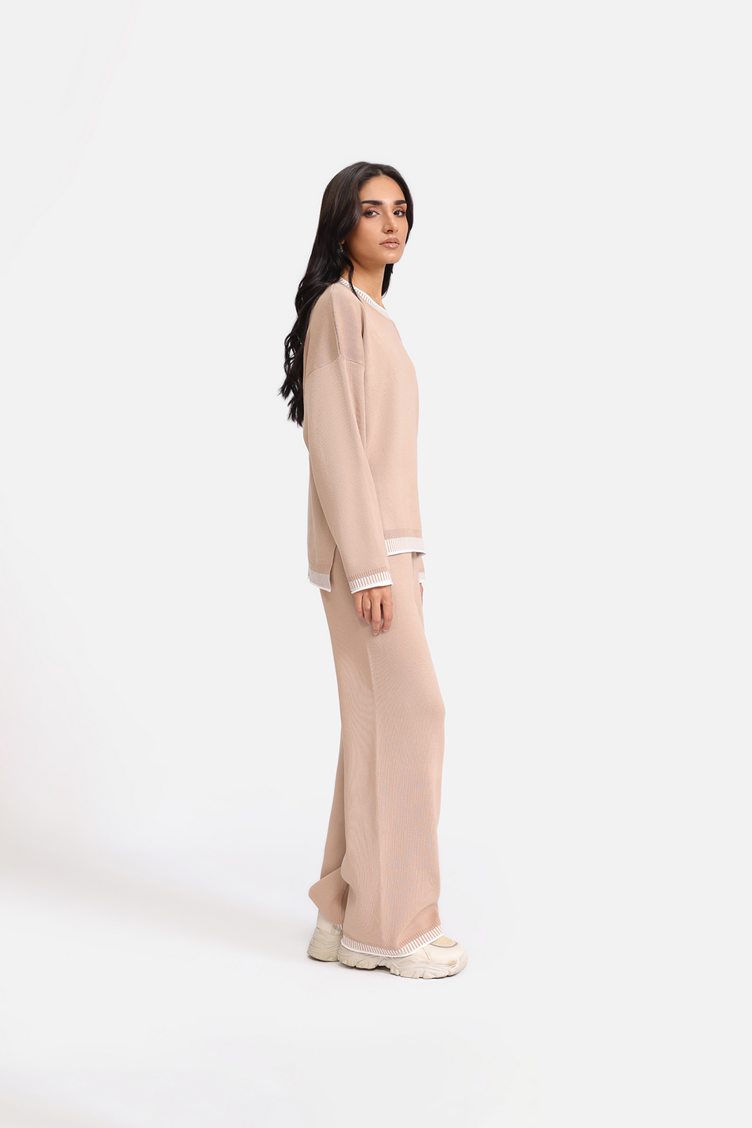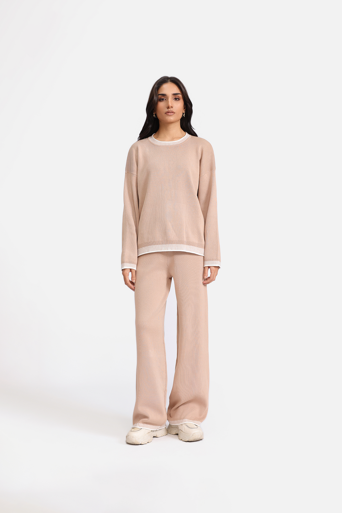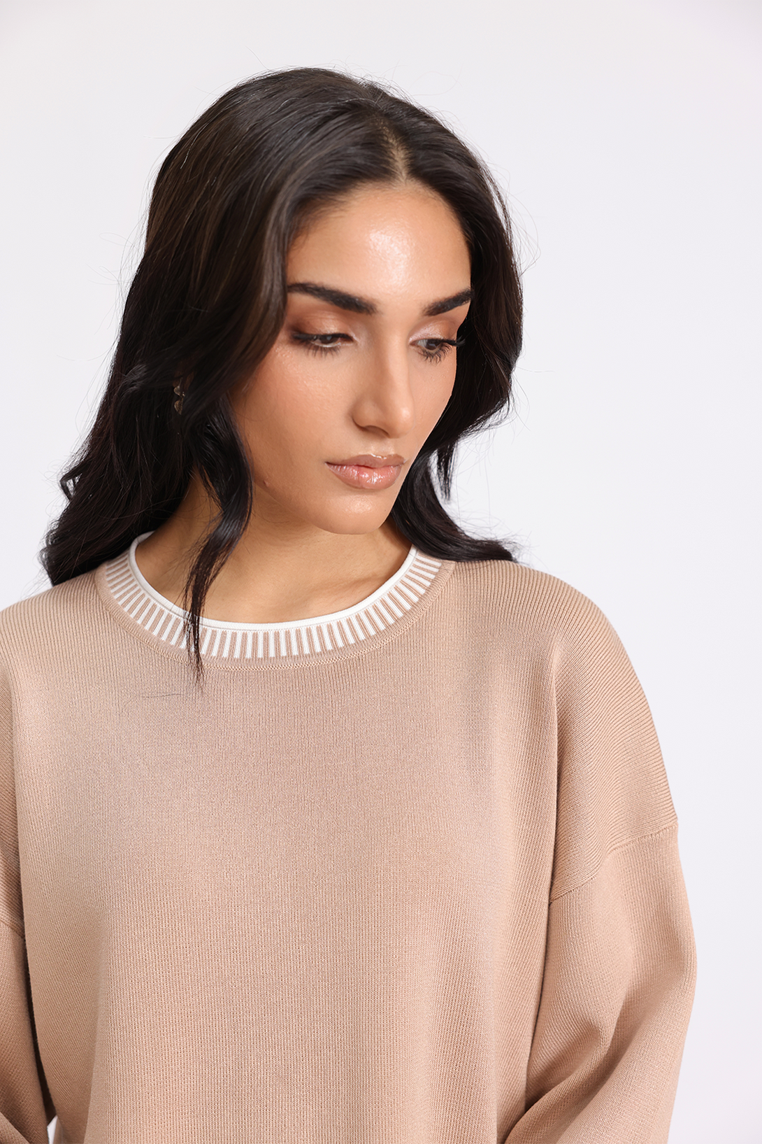Elevate your everyday style with this crew neck sweater made from soft acrylic fabric. Featuring long sleeves, side slits and contrast trim detailing, it creates a visually balanced and harmonious look, perfect for casual or smart-casual outfits.