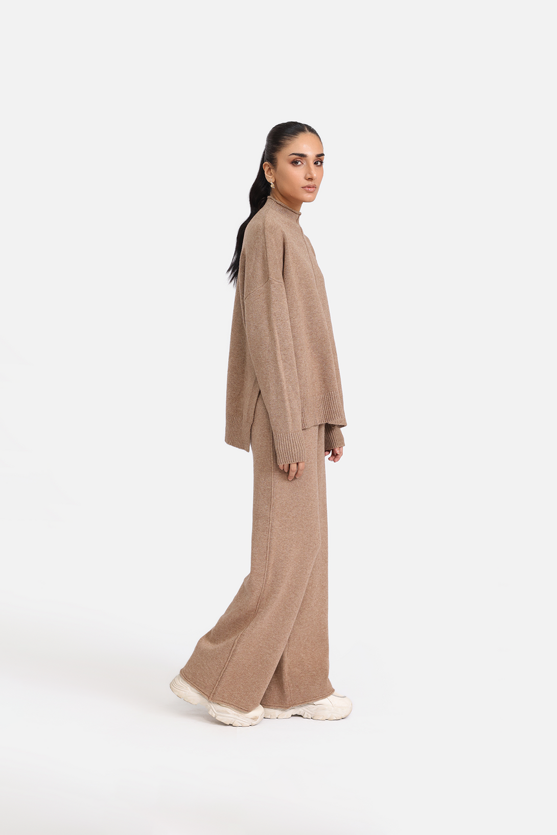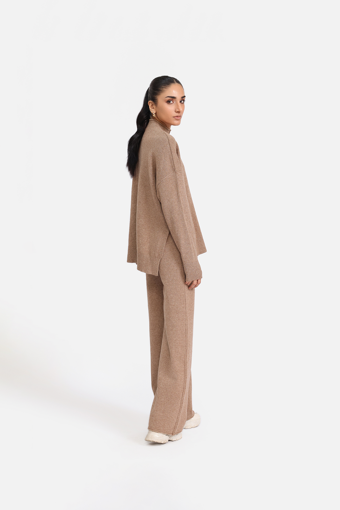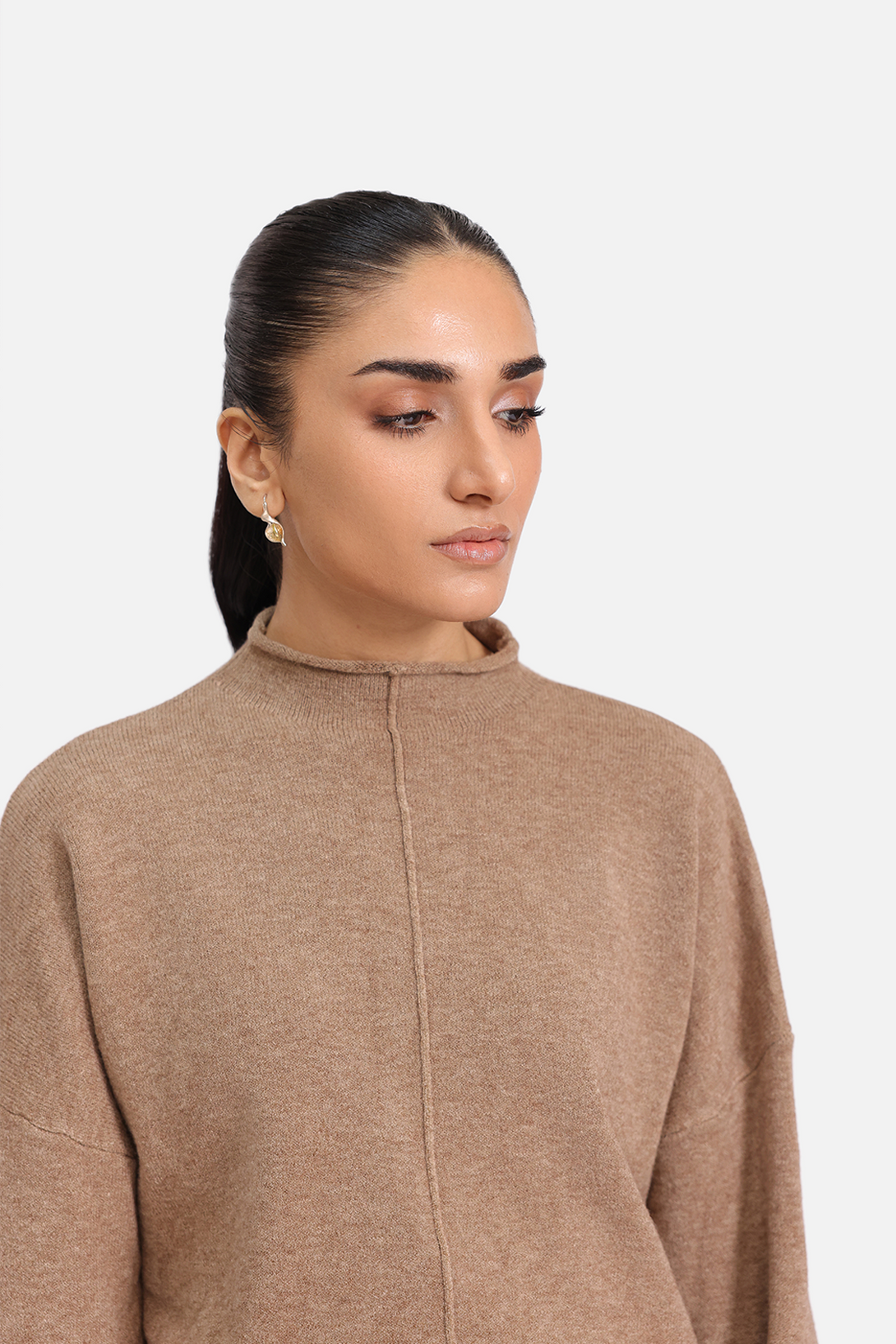 Stay effortlessly cozy and stylish with this relaxed-fit acrylic sweater. Designed with a high neck and drop shoulders, it offers a modern, laid-back silhouette. Finished with a ribbed hem for added texture and comfort, this versatile piece is perfect for casual outings or layering over your favorite bottoms.