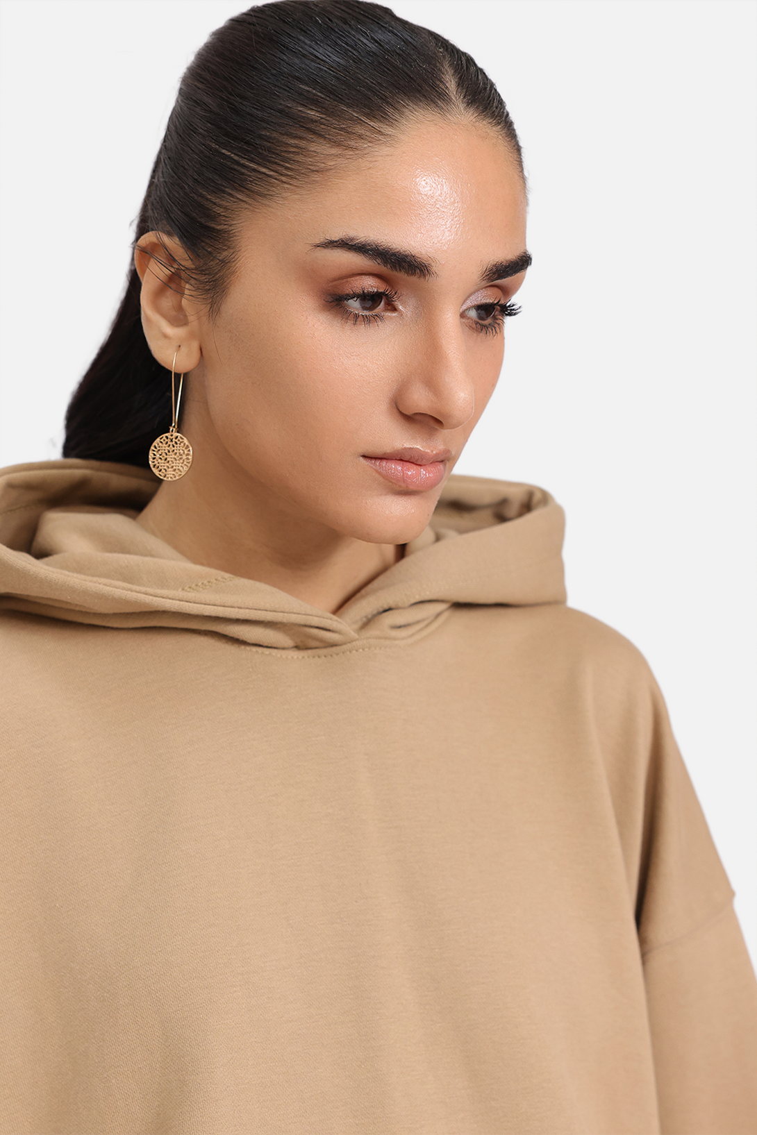 An ultra-soft oversized hoodie crafted from warm fleece fabric. Designed with a relaxed silhouette, drop shoulders, and a roomy hood for effortless comfort. Finished with wide sleeves and a clean, minimal look. Perfect for laid-back everyday wear.